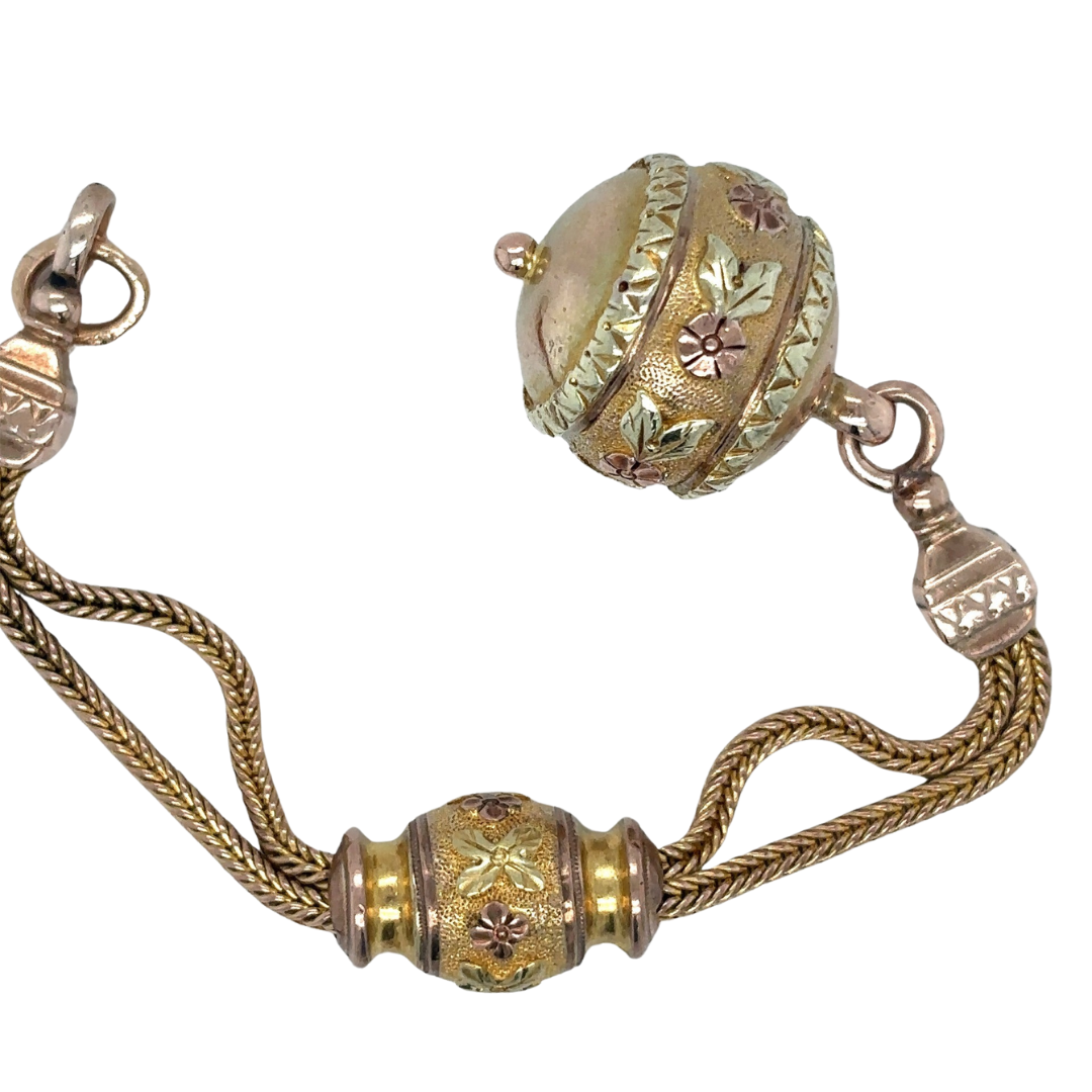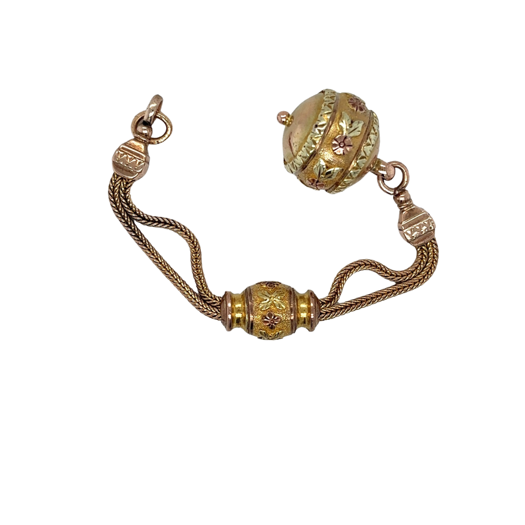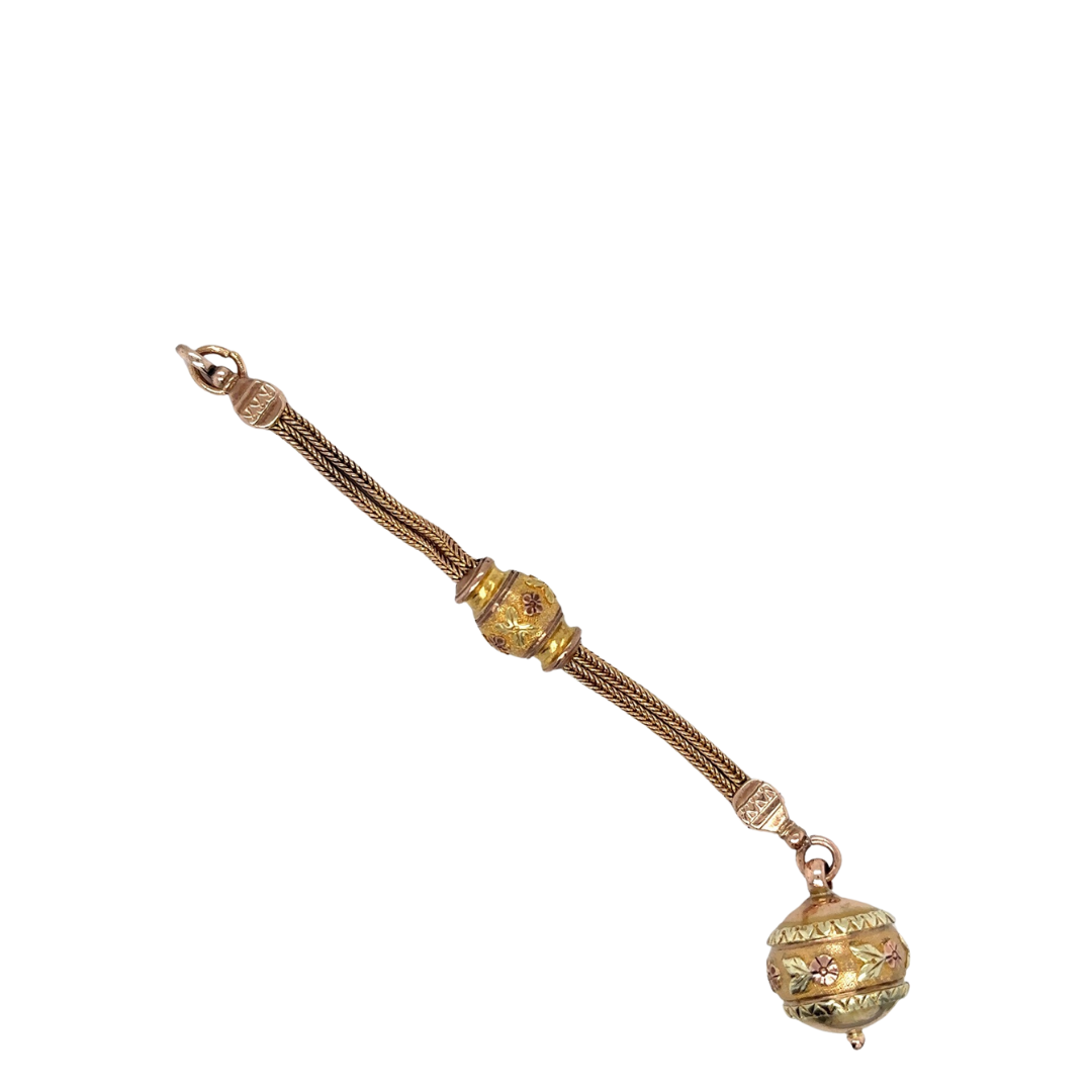 The beautiful 15ct Victorian 3 Colour Gold 1/2 Fob with Ball Pendant,