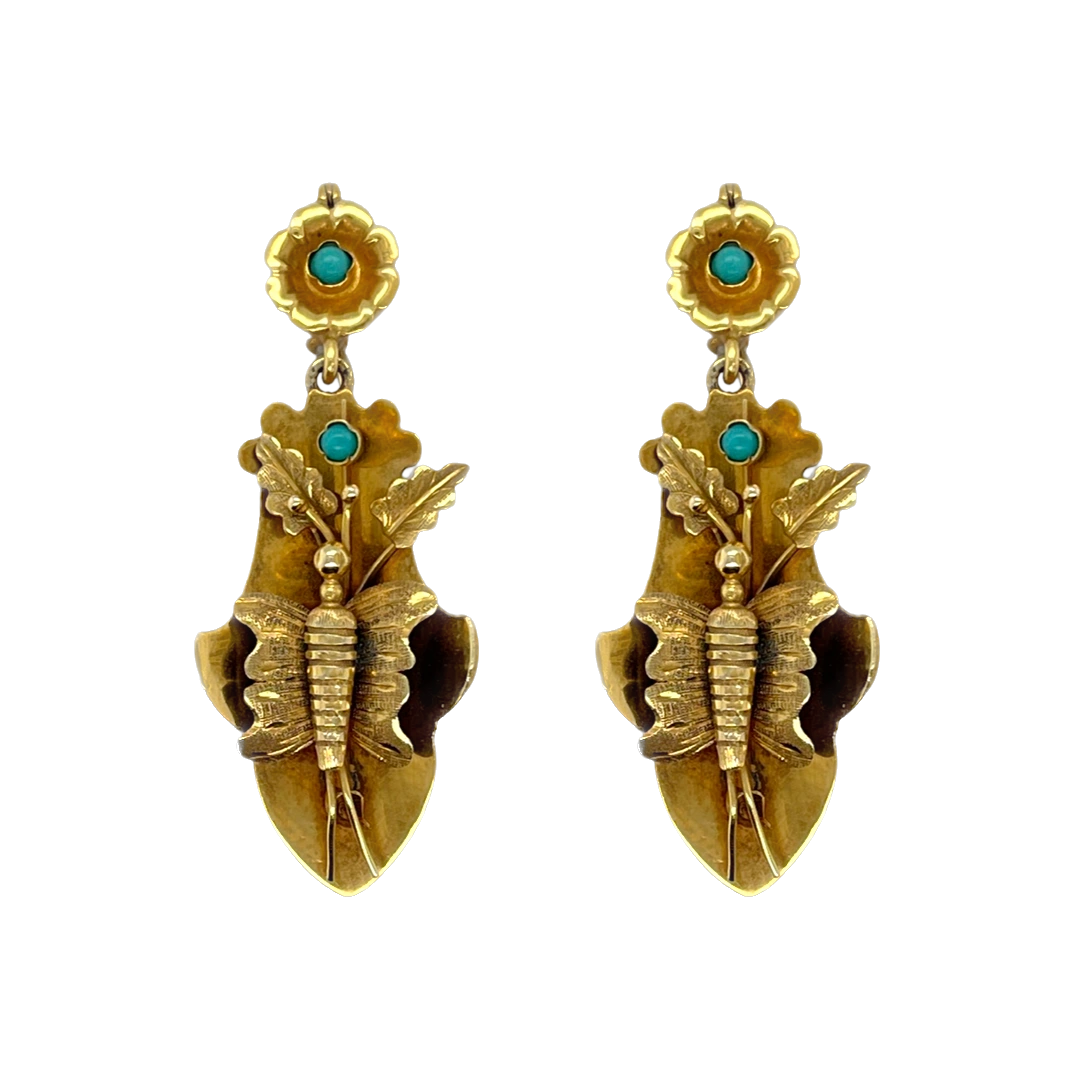 Victorian 15ct Yellow Gold Butterfly and Turquoise Drop Earrings