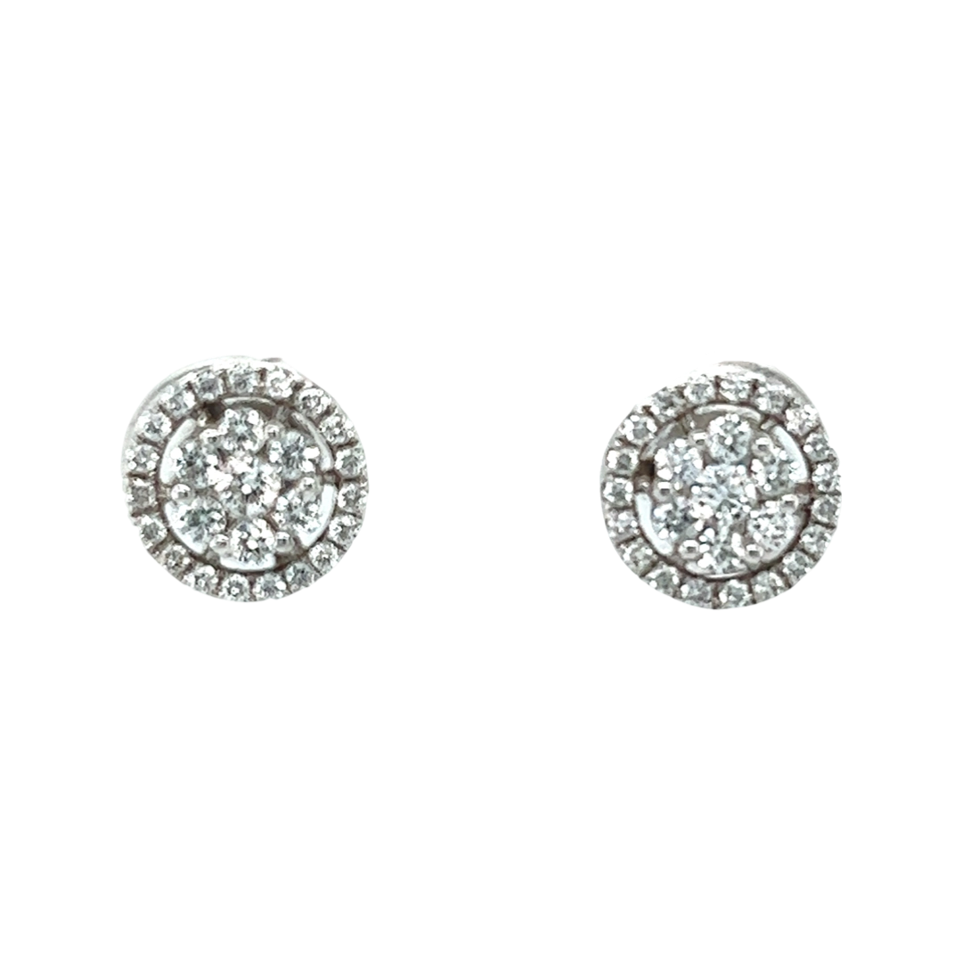 18ct White Gold Halo Diamond Daisy Studs TDW = 0.54 ct