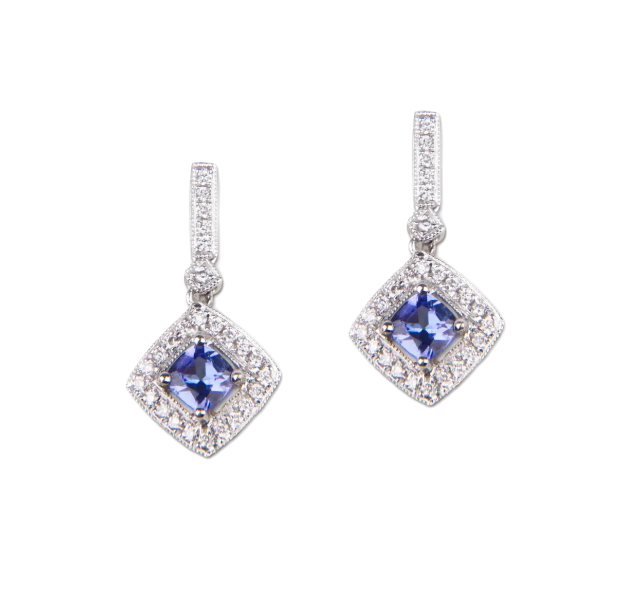18ct White Gold Tanzanite and Diamond Drop Stud Earrings