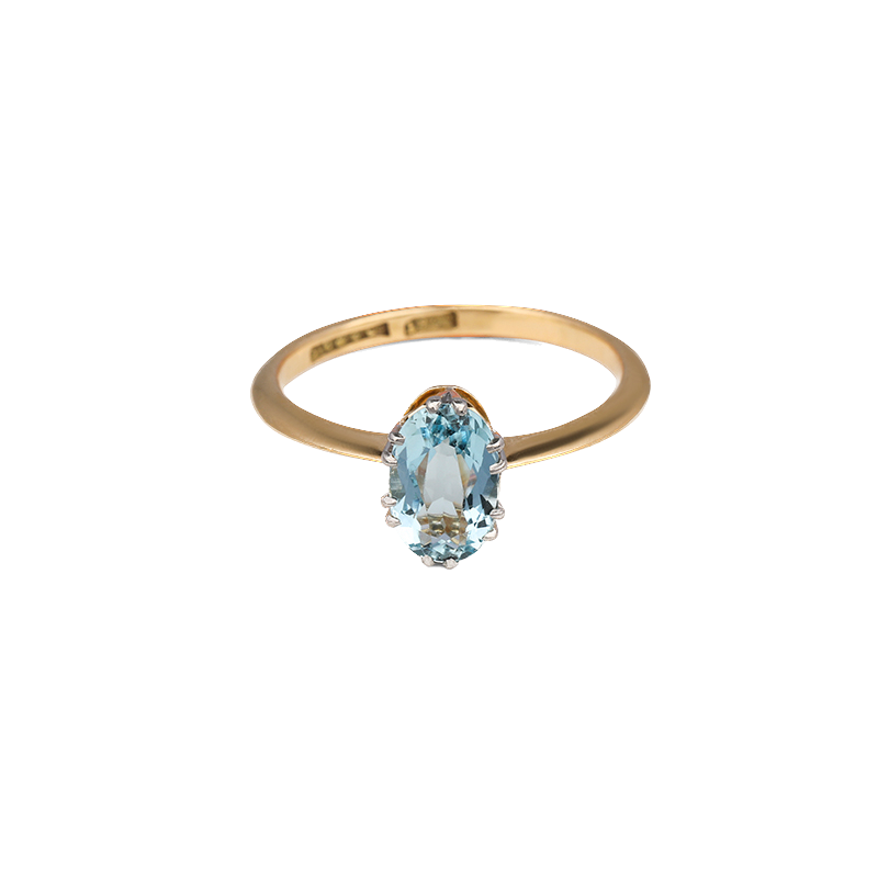 18ct Yellow Gold Oval Claw Set Aquamarine Ring