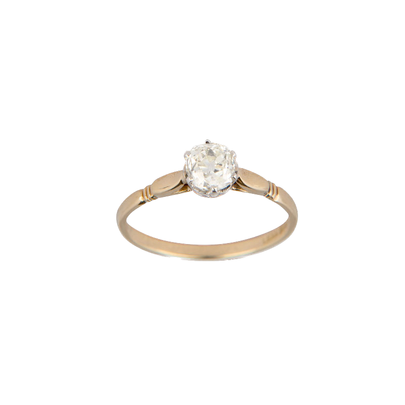 18ct Yellow Gold and Platinum Early brilliant Cut Solitaire Diamond Ring circa 1900.