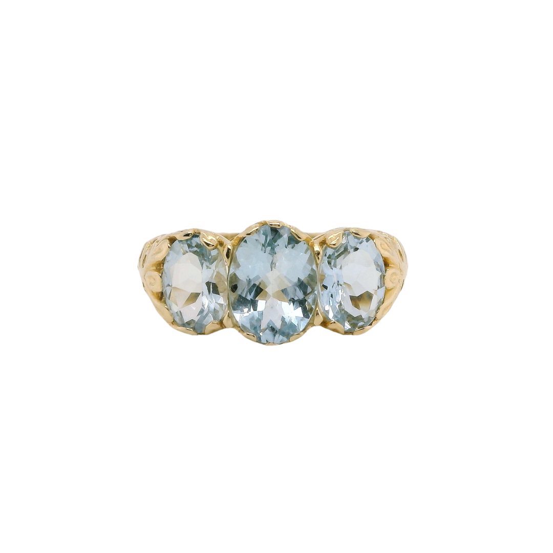 Our beautiful 9ct Yellow Gold 3 Graduated Oval Aquamarine Ring with Filigree designs is a show stopping piece you should add to your collection today!