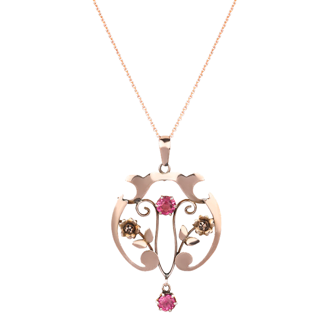9ct Rose Gold Art Nouveau Pink Paste Pendant