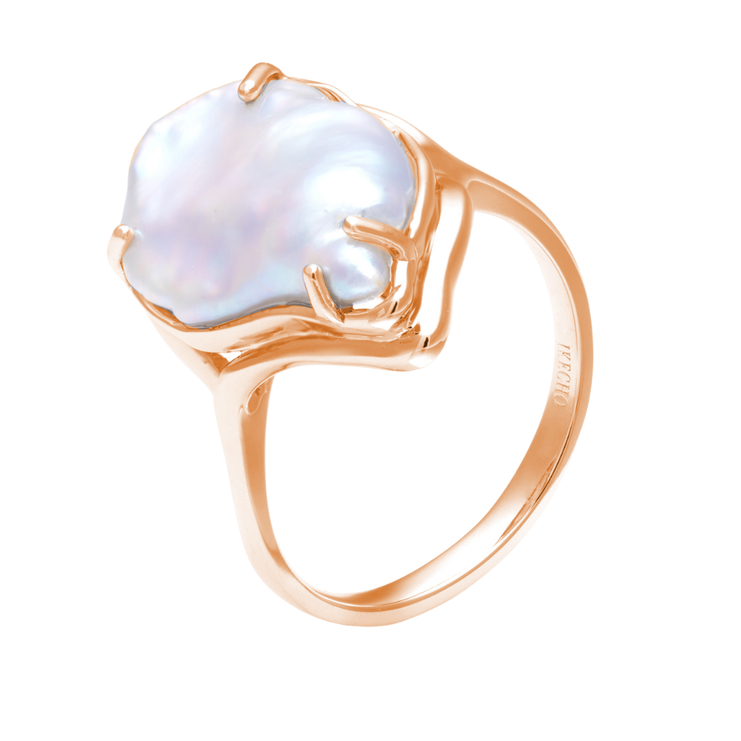 9ct Rose Gold Keshi 12-18mm Freshwater Pearl Handmade Ring
