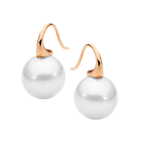 9ct Rose Gold White Round 12mm Fresh Water Pearl Short Plain Hook Earrings