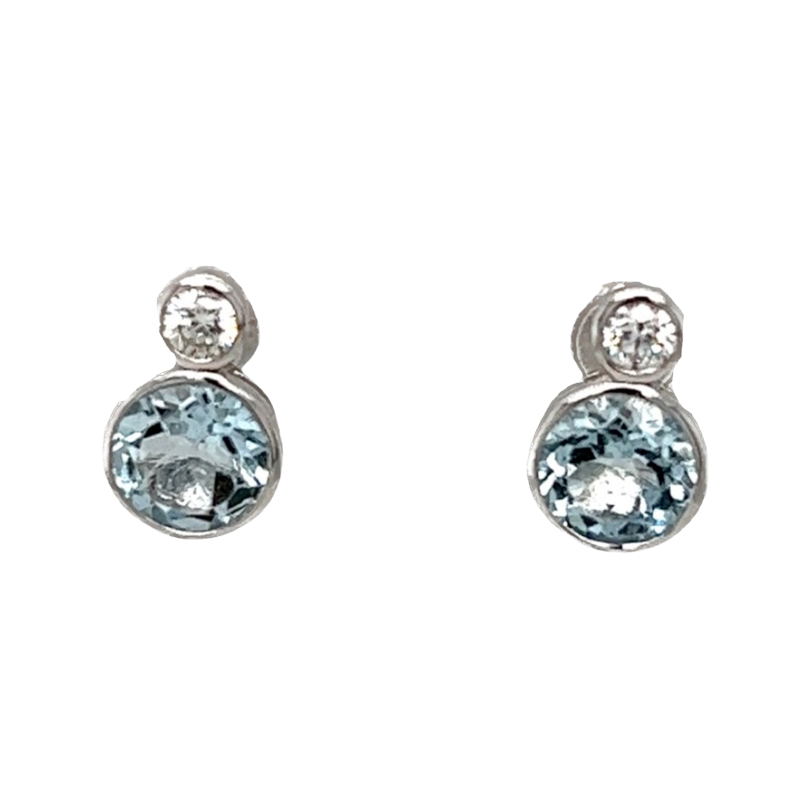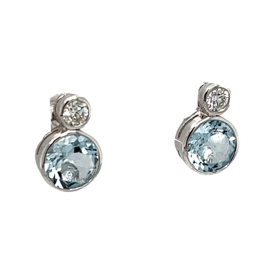 9ct White Gold Aquamarine and Diamond Studs