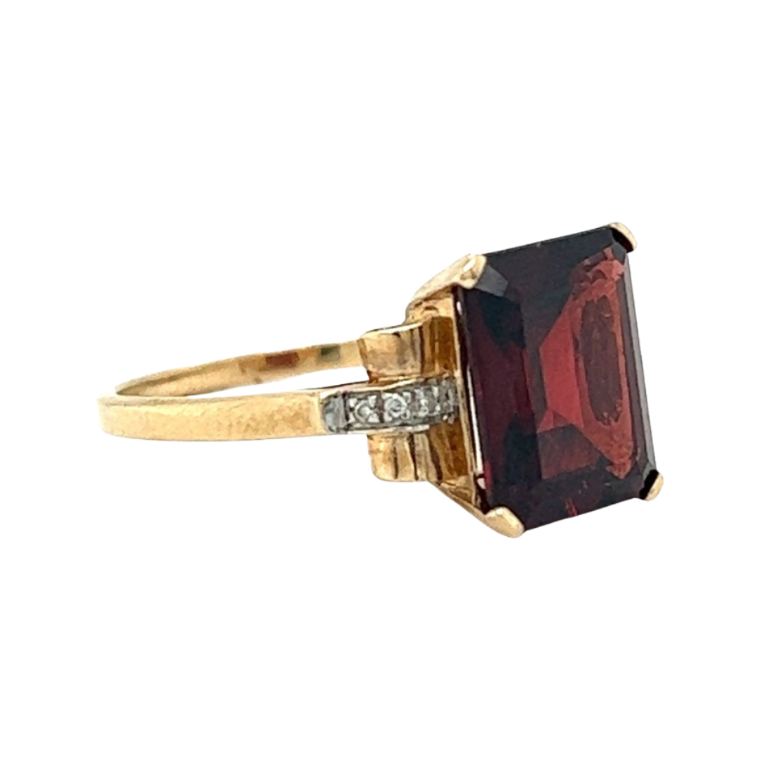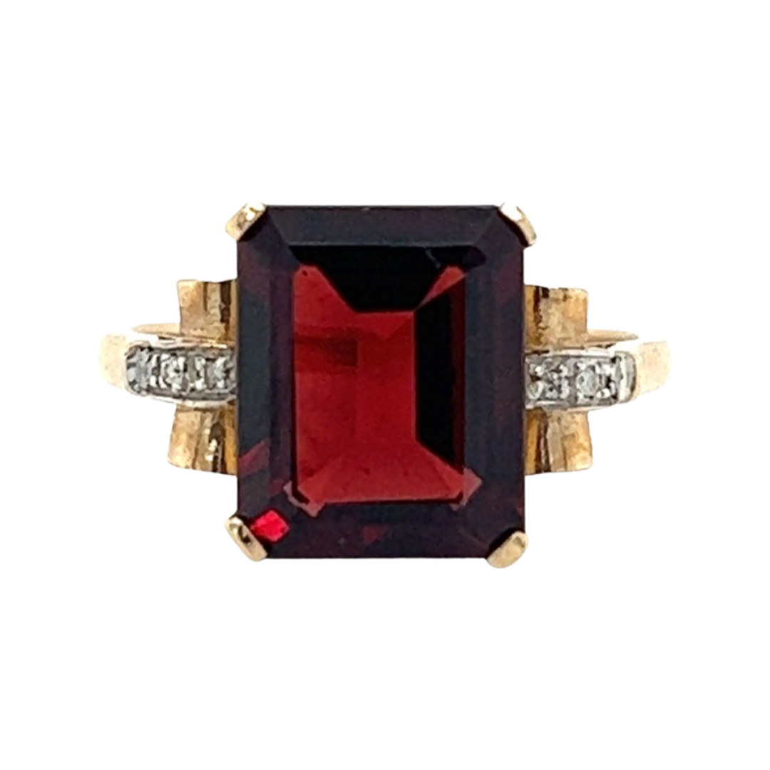 9ct Yellow Gold Garnet & Diamond Cocktail Style Ring
