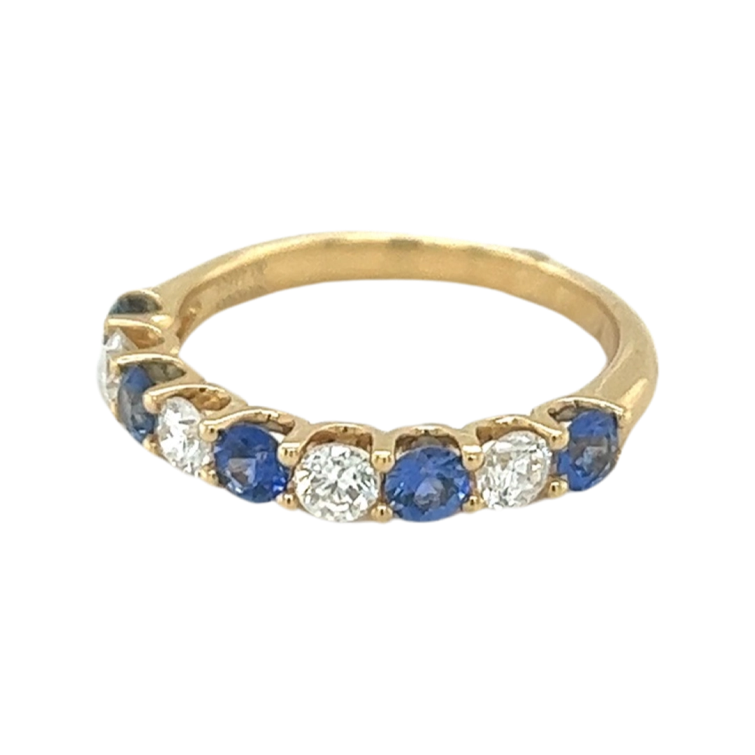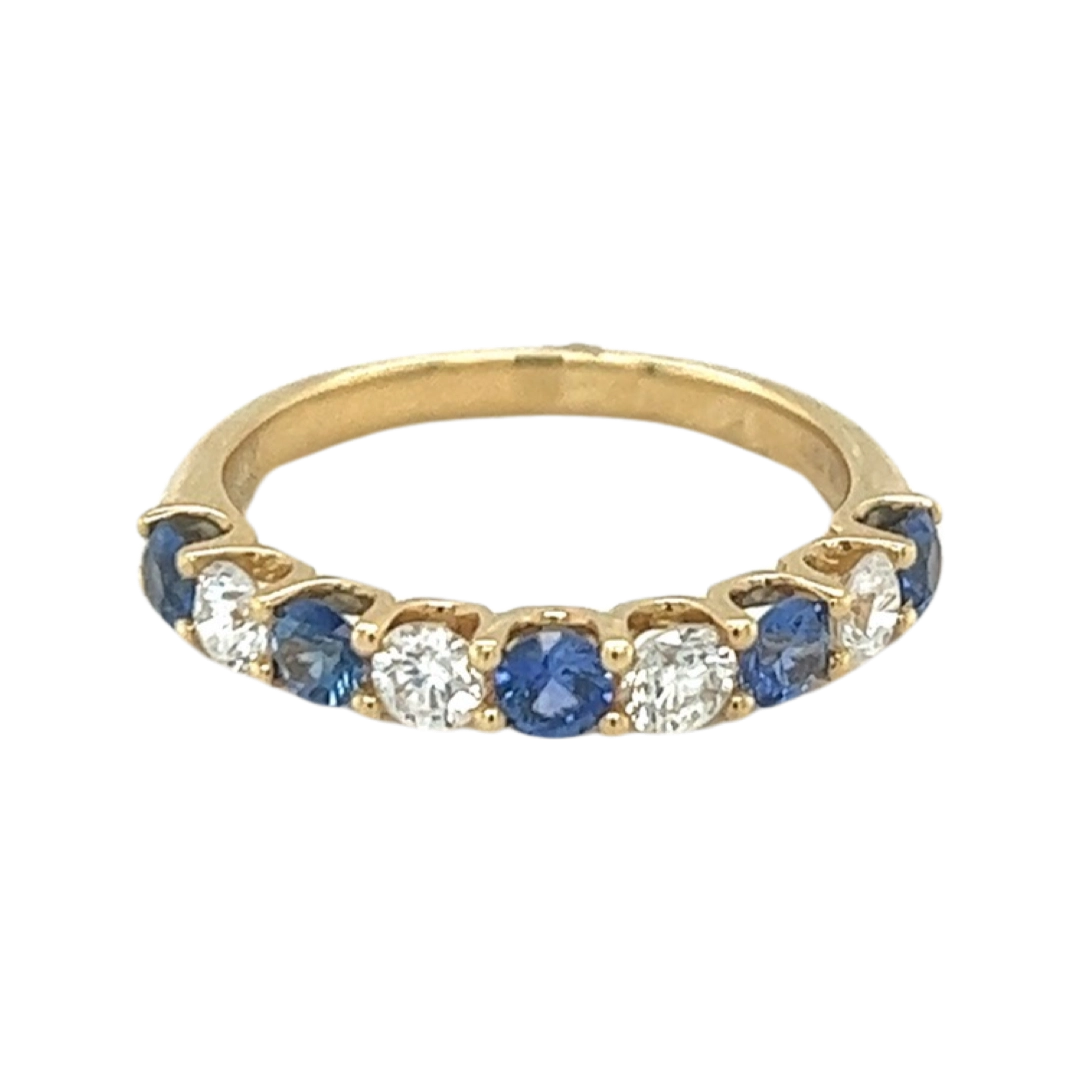 The timeless and beautiful 18ct Yellow Gold Alternating Brilliant Cut Sapphire and Diamond Claw Set ring Band would be the perfect wedding band for that special someone.