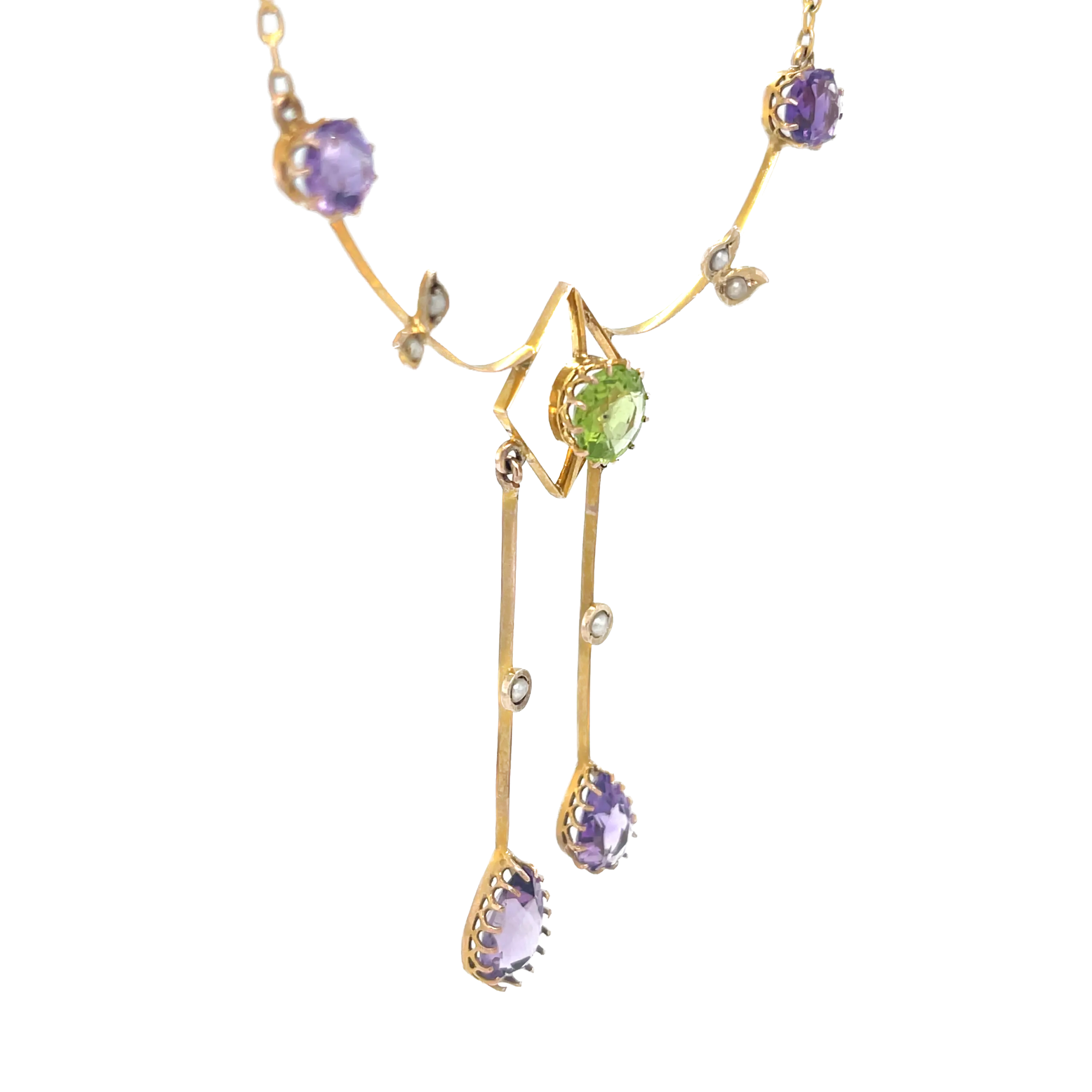 Australian 9ct Yellow Gold, Amethyst & Peridot Suffragette Necklace By Willis