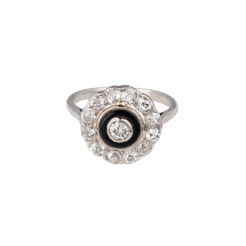 Art Deco 18ct White Gold Diamond and Onyx Daisy Cluster Ring
