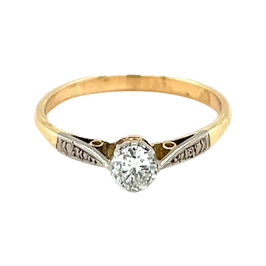 Art Deco Handmade 18ct yellow and white gold Diamond solitaire ring.