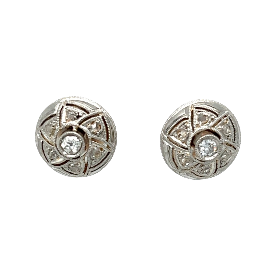 How simply stunning are our Art Deco Handmade 18ct & Platinum Old Mine Cut Diamond Circular Stud Earrings.