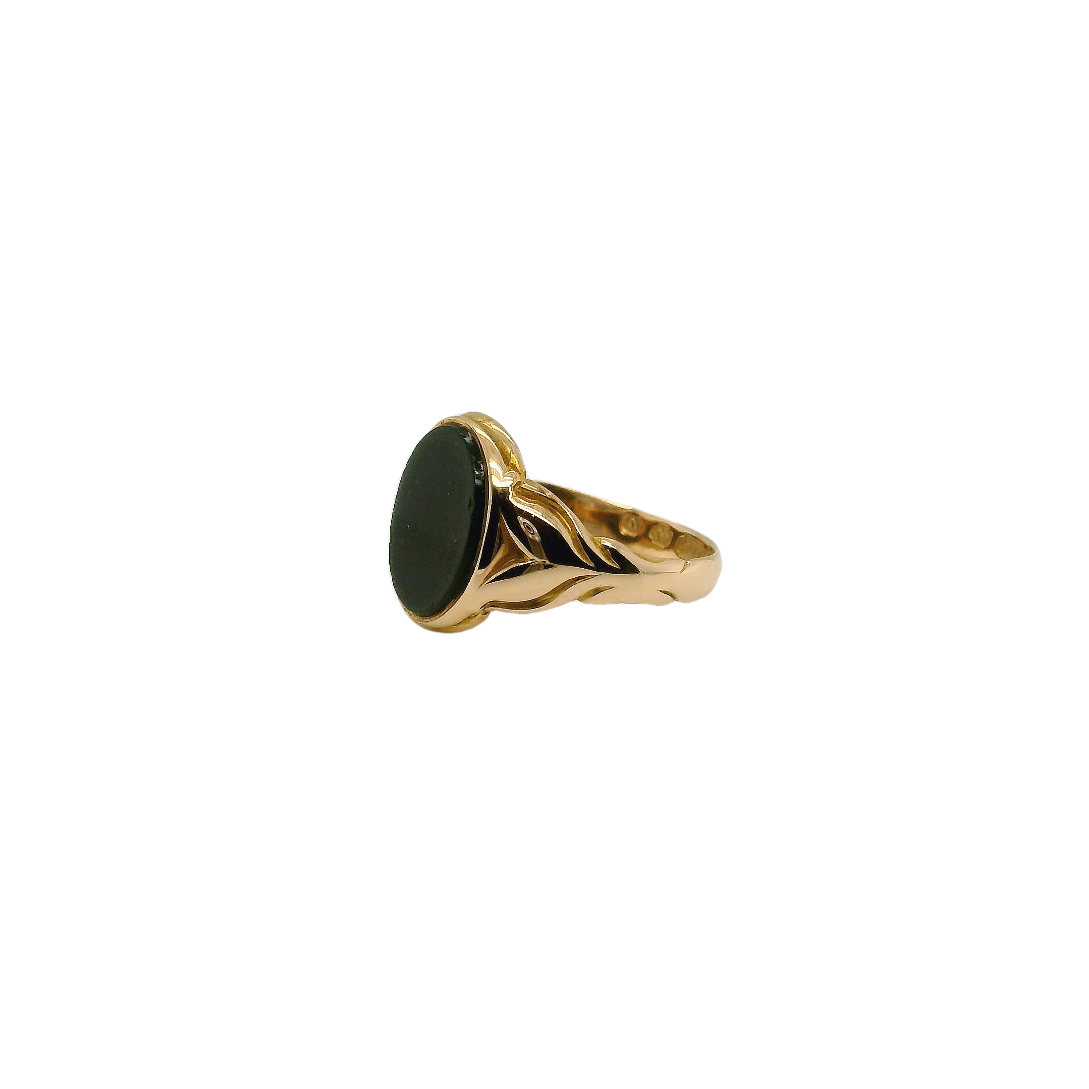 Our Stunning Art Deco 15ct yellow gold Oval Bloodstone signet ring Birmingham 1920 would suit any hand.