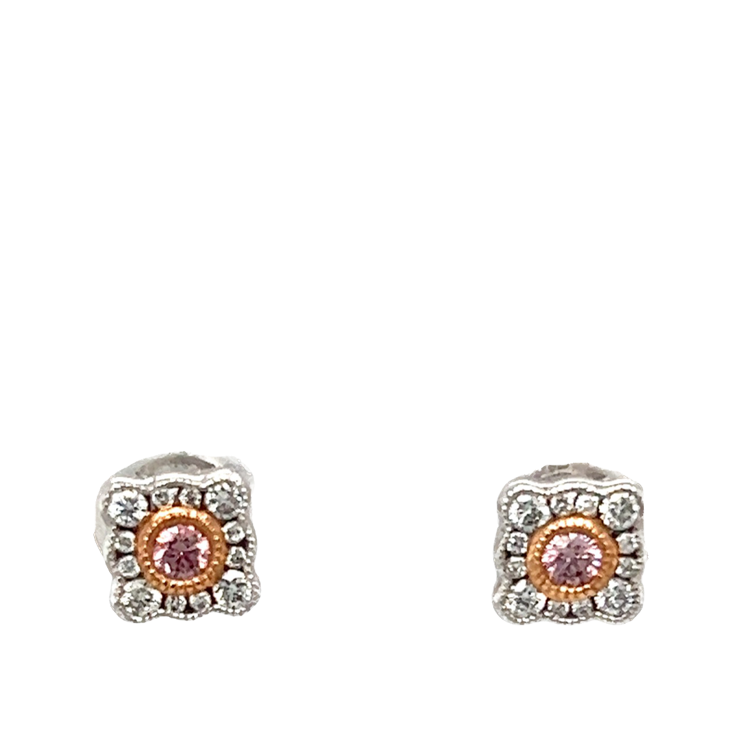 Our stunning Australian Pink Diamond square set cluster earrings are set in 18ct white gold.