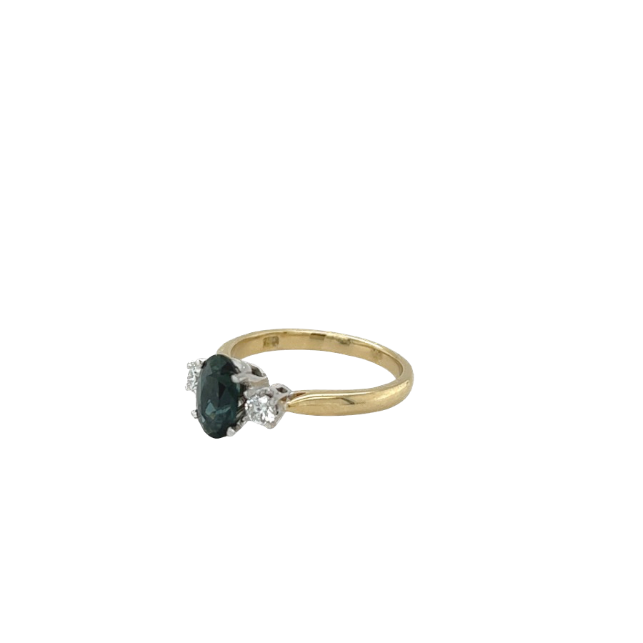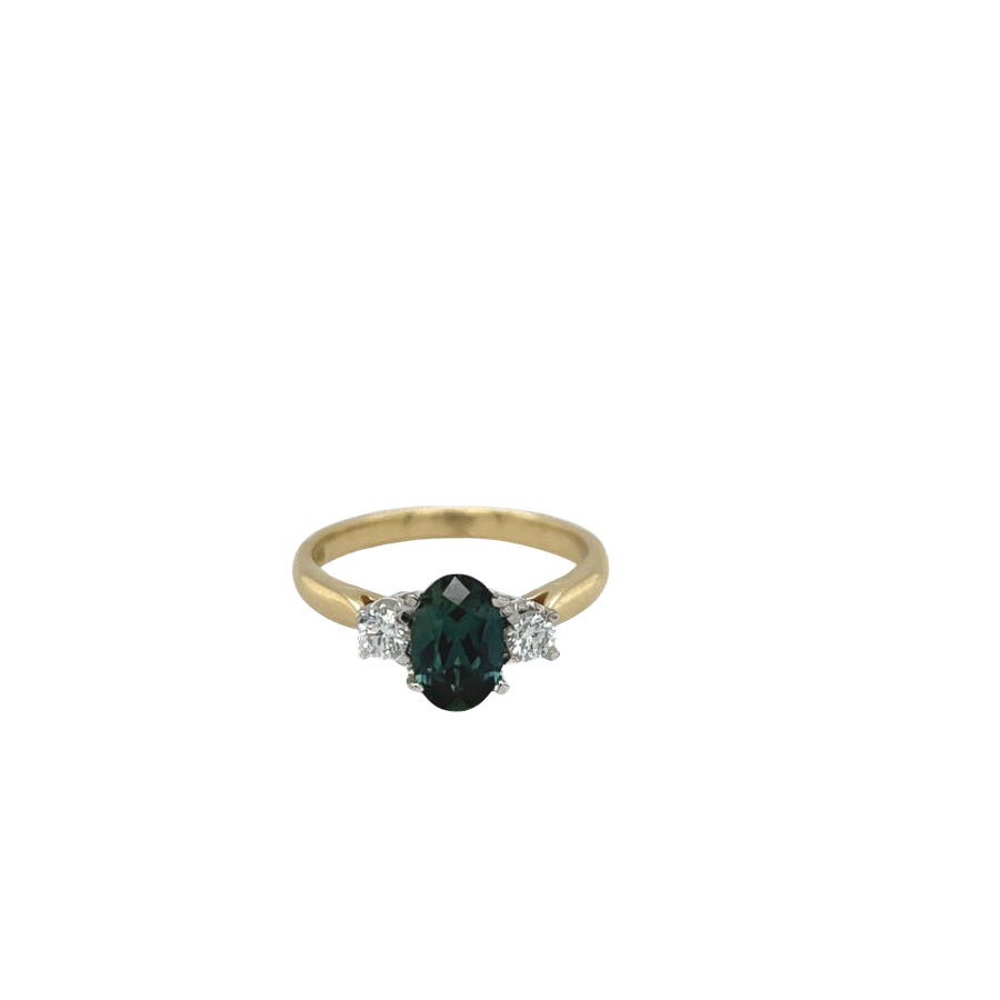 Our show stopping 18ct Yellow Gold Oval Australian Teal Sapphire and Diamond Ring is an elegant piece that would look absolutely beautiful upon any finger, come and try on this ring in store today.