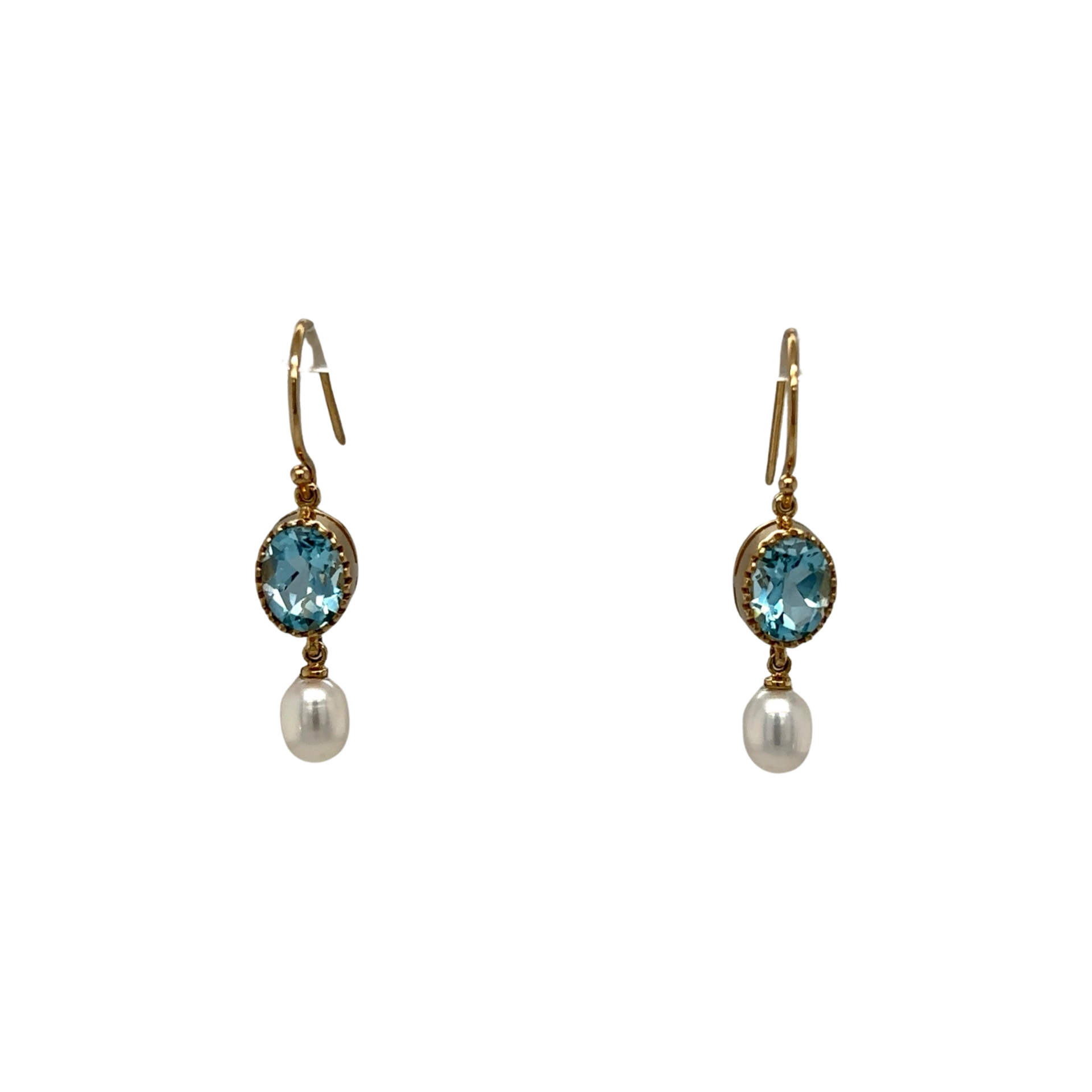Beautiful 9ct Yellow Gold Blue Topaz and Pearls Earrings, a must have for summer and your jewellery box!