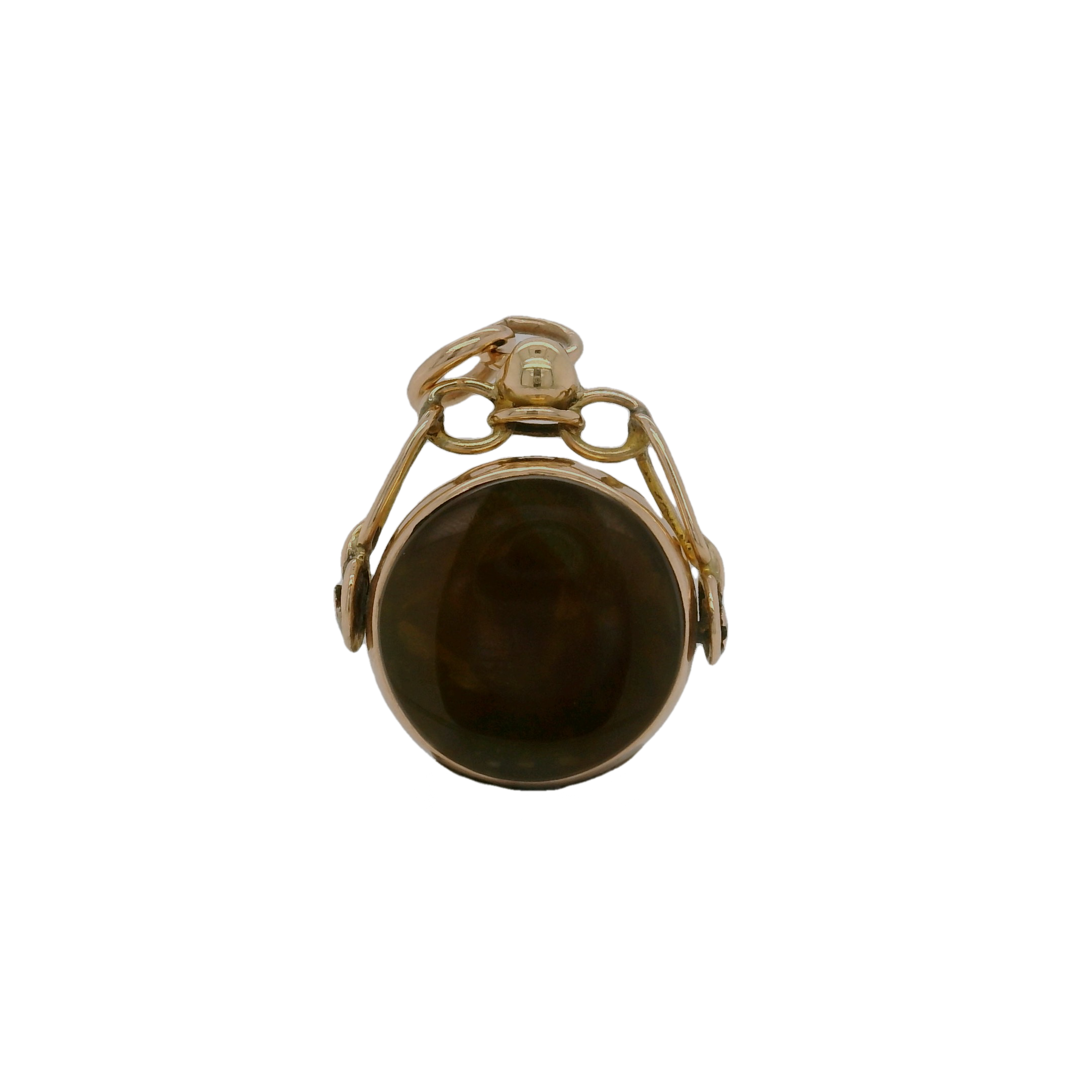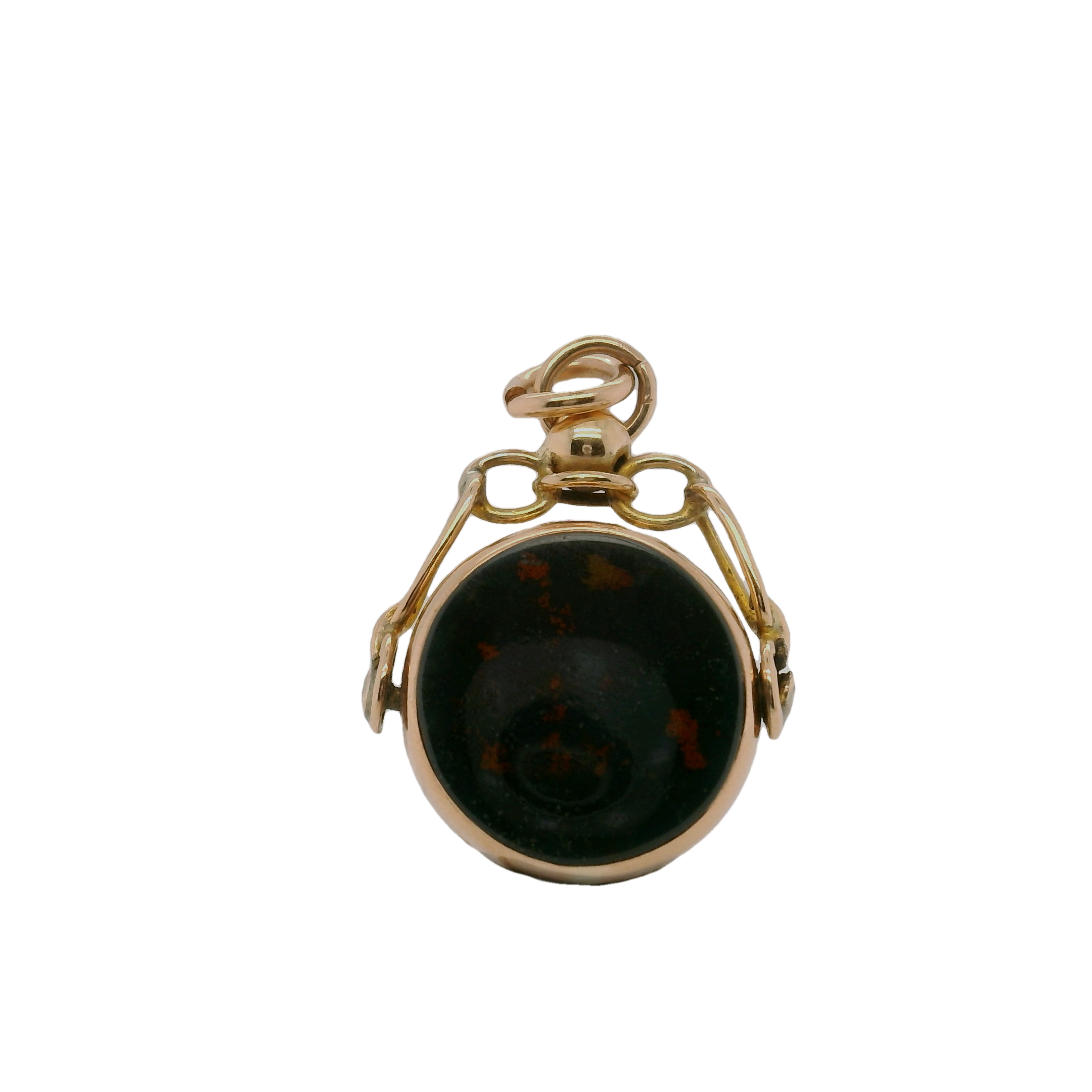 Small Circular Bloodstone & Carnelian 9ct Rose Gold Spinner HM Chester