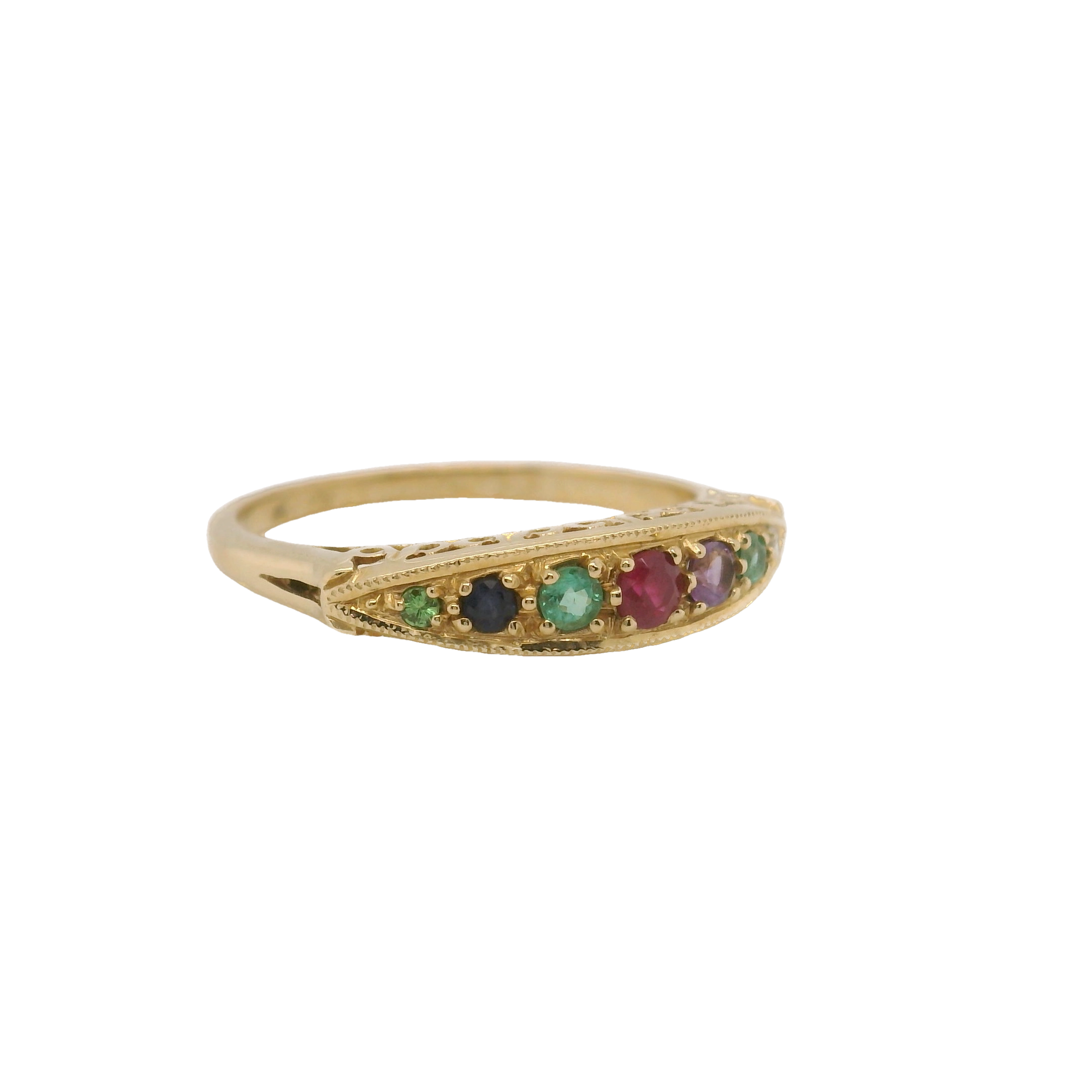 The warm tones of the yellow gold complement the graceful gem colours, creating a striking contrast that enhances the ring's overall charm. Perfect for any occasion—be it a birthday, anniversary, or simply a gesture of love—the Dearest Ring serves as a reminder of the bond shared between the giver and the recipient. Its timeless design ensures it can be worn every day or reserved for special moments, making it a versatile addition to any jewellery collection.