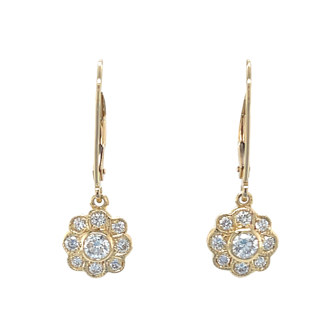 18ct Yellow Gold Diamond Daisy Drop Earrings.