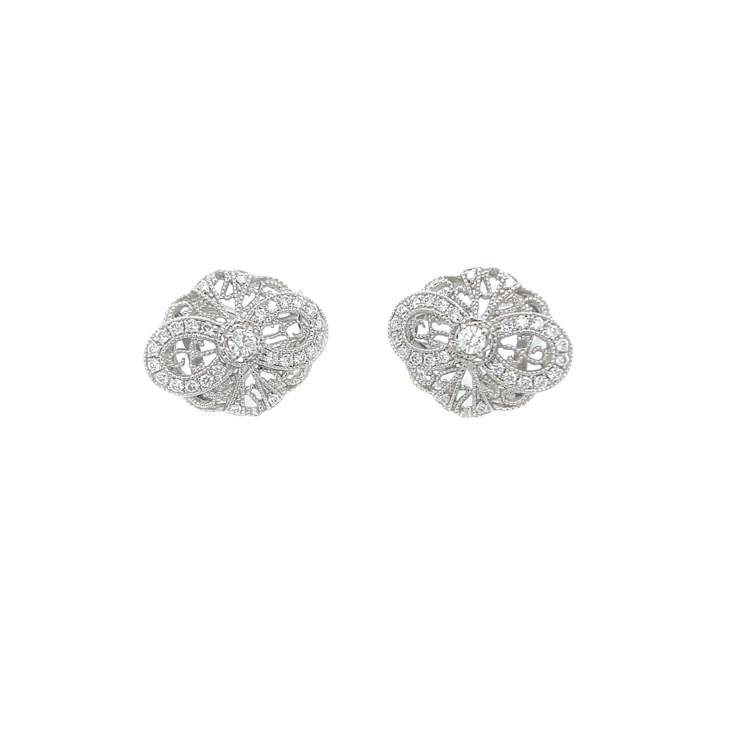 18ct White Gold Art Deco Style Filigree Diamond Earrings