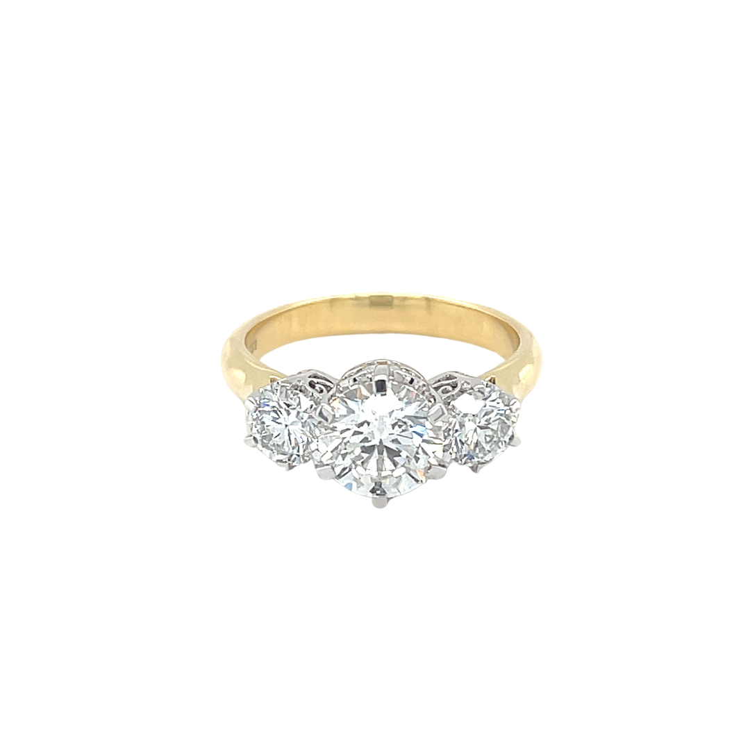 Modern 18ct Yellow Gold Diamond Trilogy Ring. The Diamonds are claw set