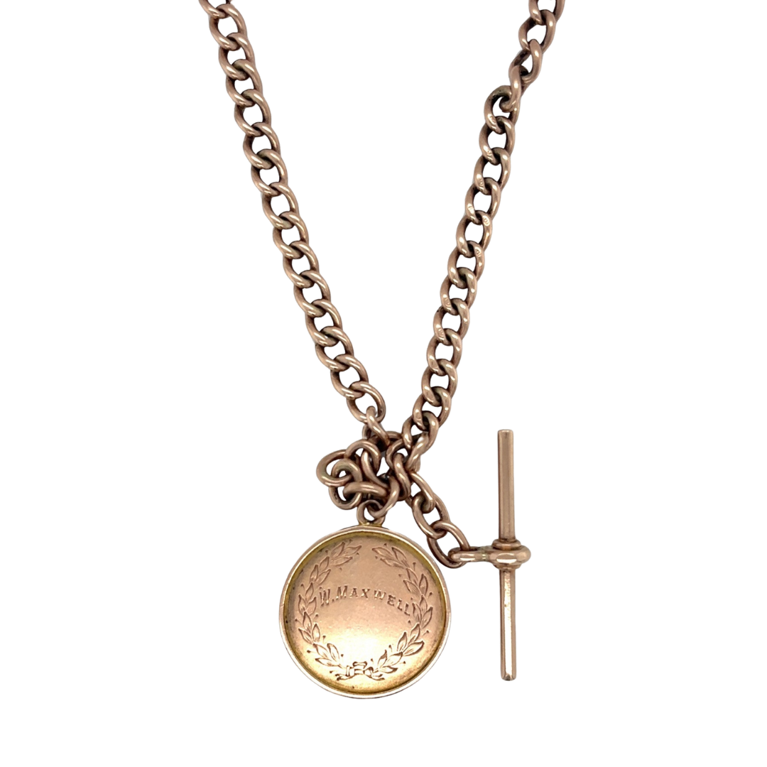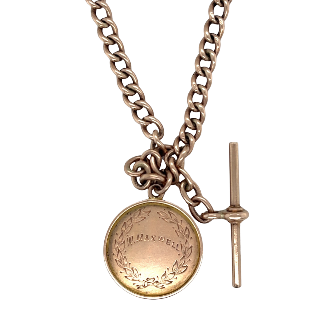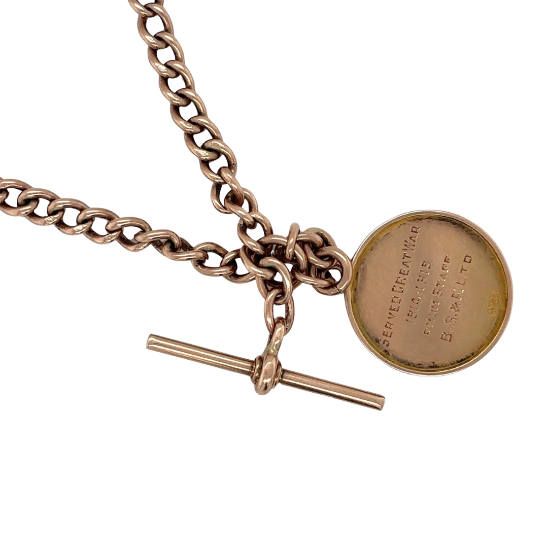 The historic and special Antique Solid 9ct Rose Gold Fob Chain with Medallion & T-Bar C1915 , holds so much story love and beauty.