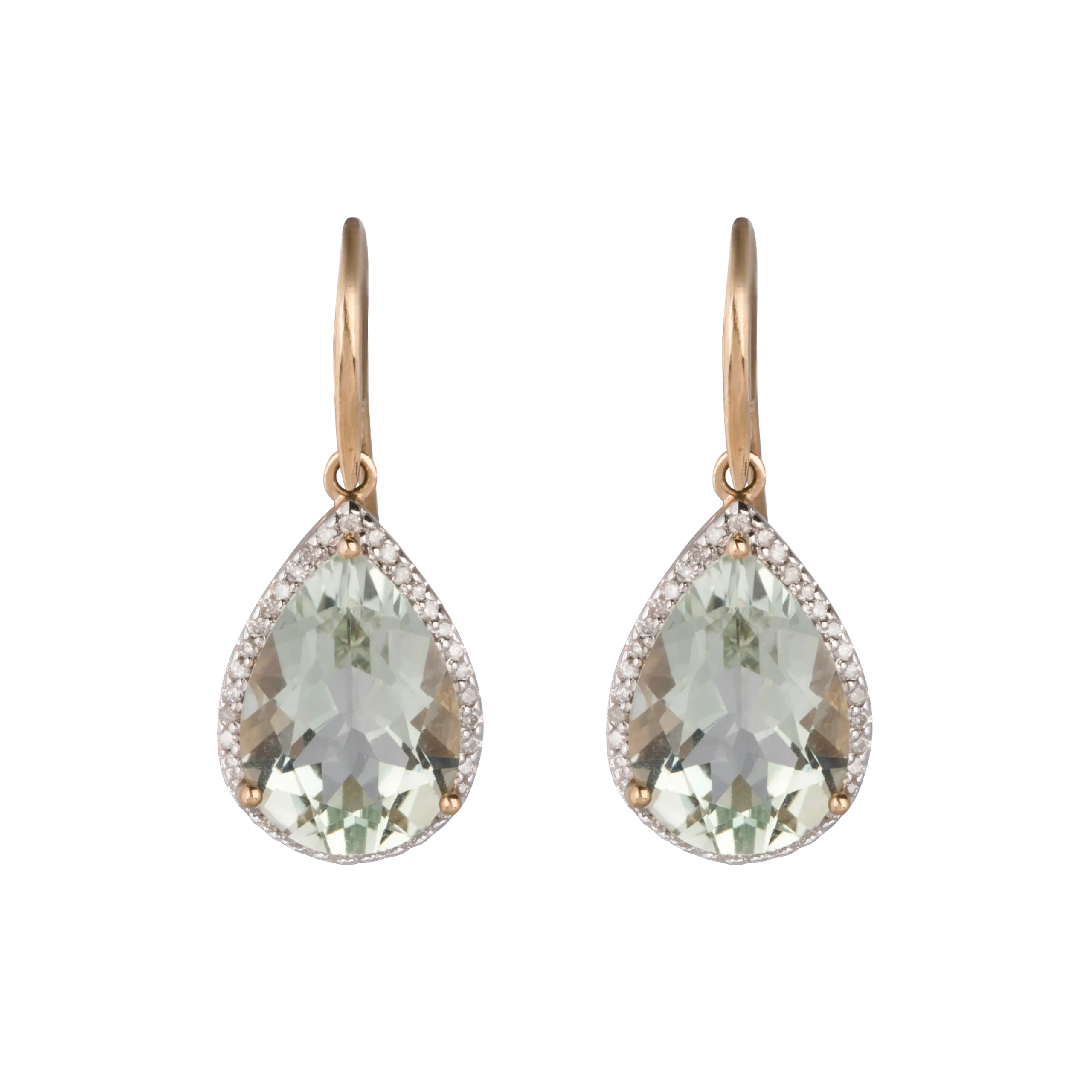 Let us help you find something similar to this 9ct Yellow Gold Green Amethyst & Diamond Surround Pear Shape Drop Hook Earrings