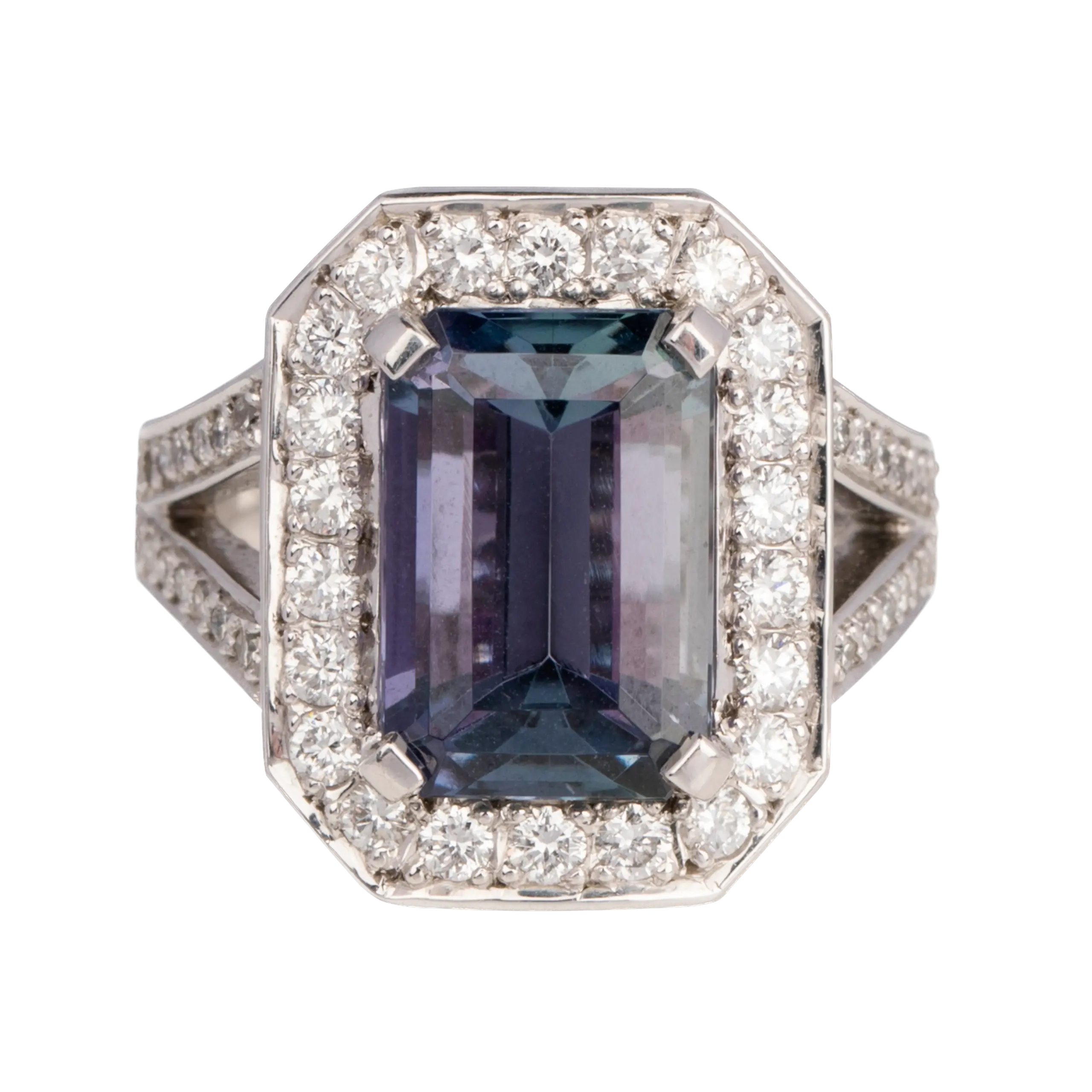 Tanzanite with Diamond Surround Dress Ring. The Tanzanite has a range from