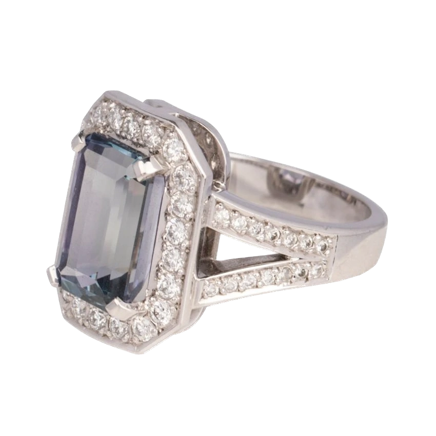 Handmade 18ct White Gold with Emerald Cut Natural Unheated Bi-Colour