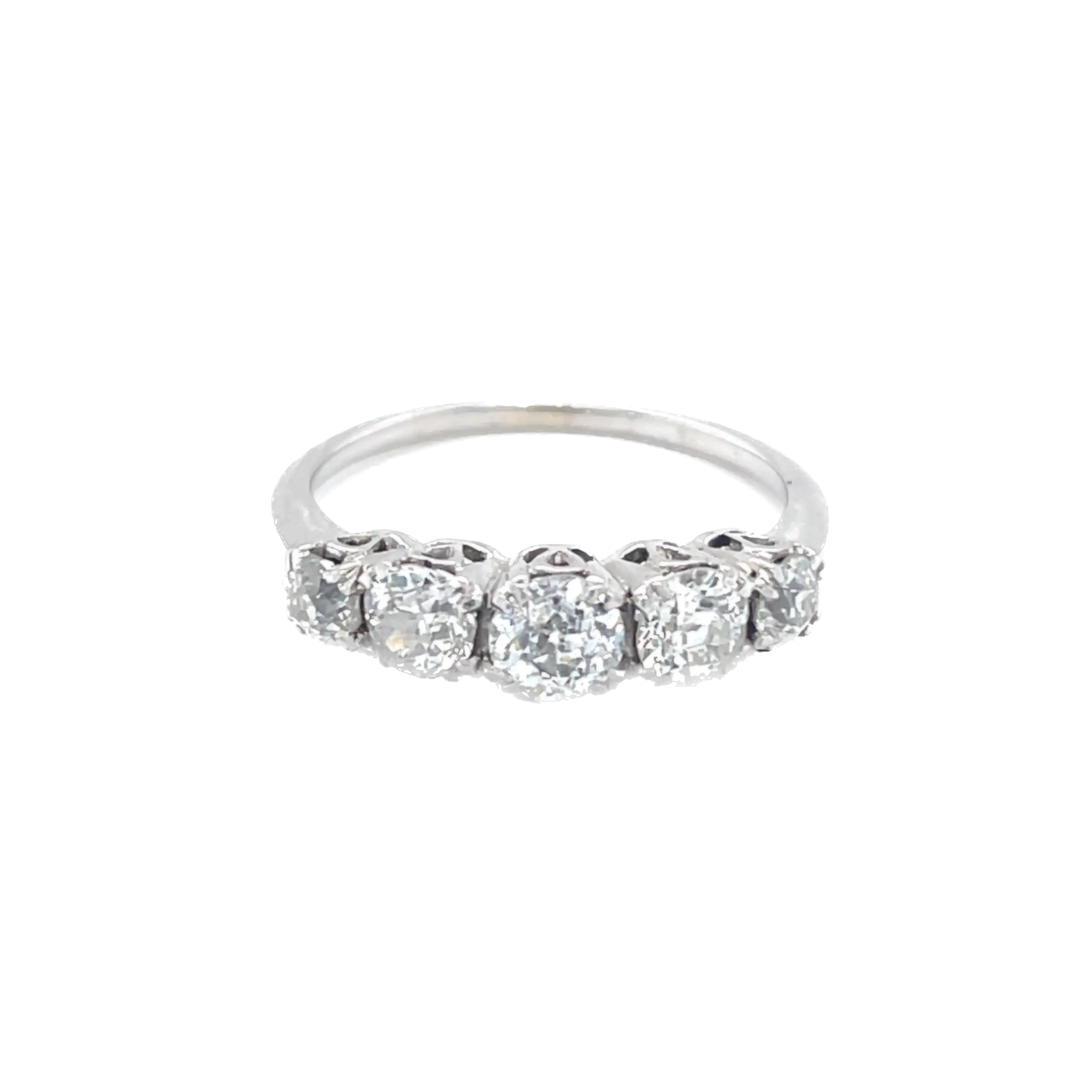 Handmade 18ct White Gold Five Diamond 1/2 Hoop Style Ring C1930