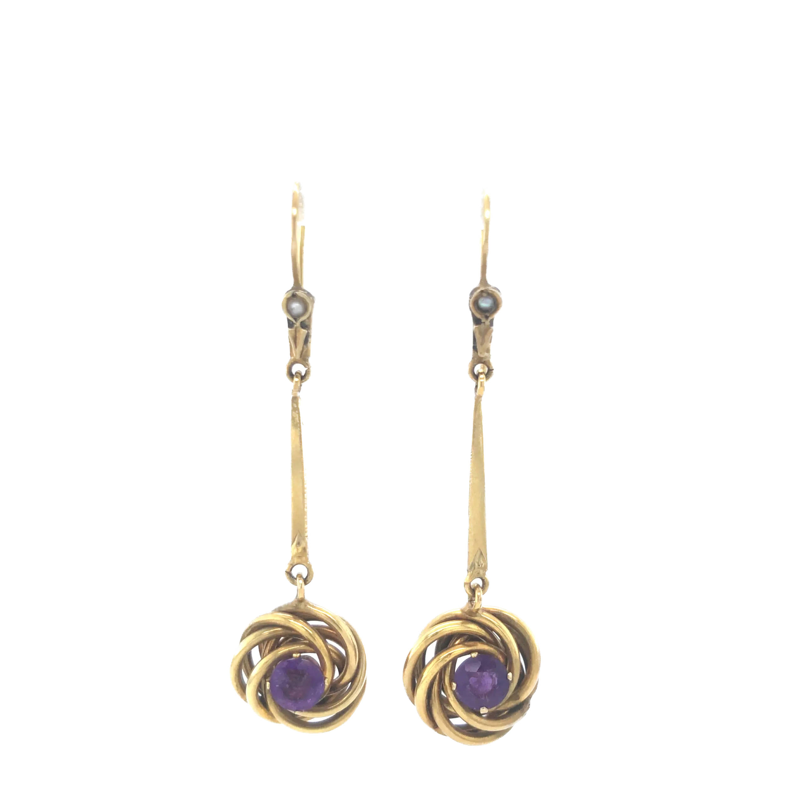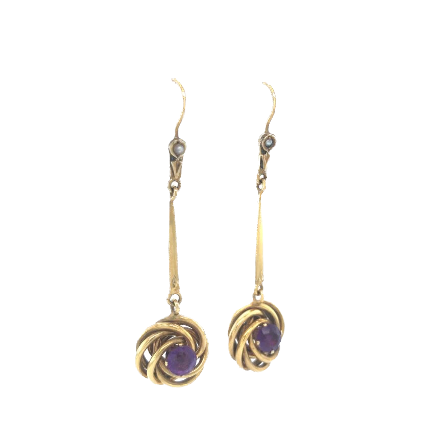Let us help you find something similar to this Victorian 9ct Yellow Gold Lover’s Knot Amethyst Drop Hook Earrings