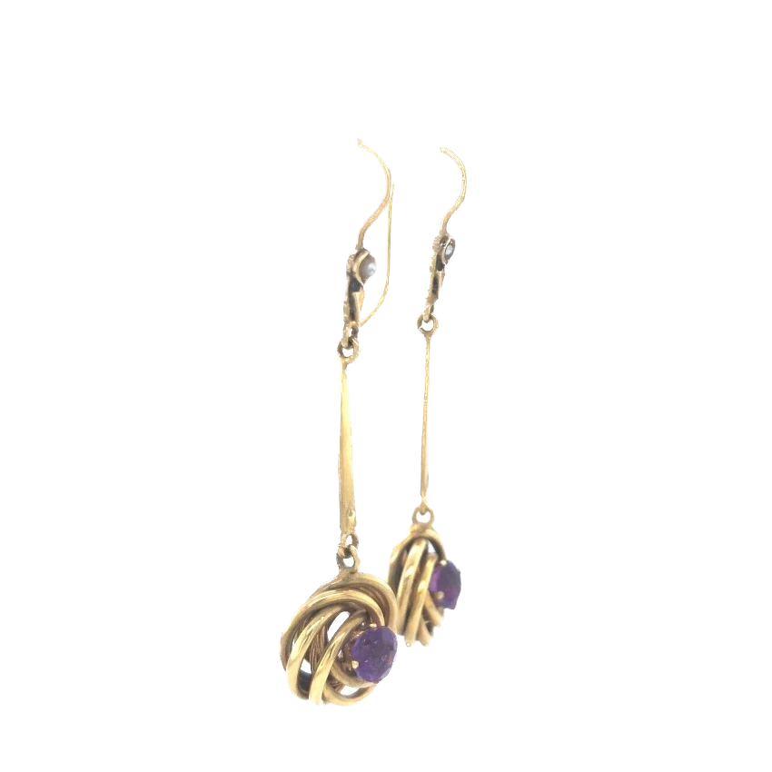 Victorian 9ct Yellow Gold Lover’s Knot Amethyst Drop Hook Earrings