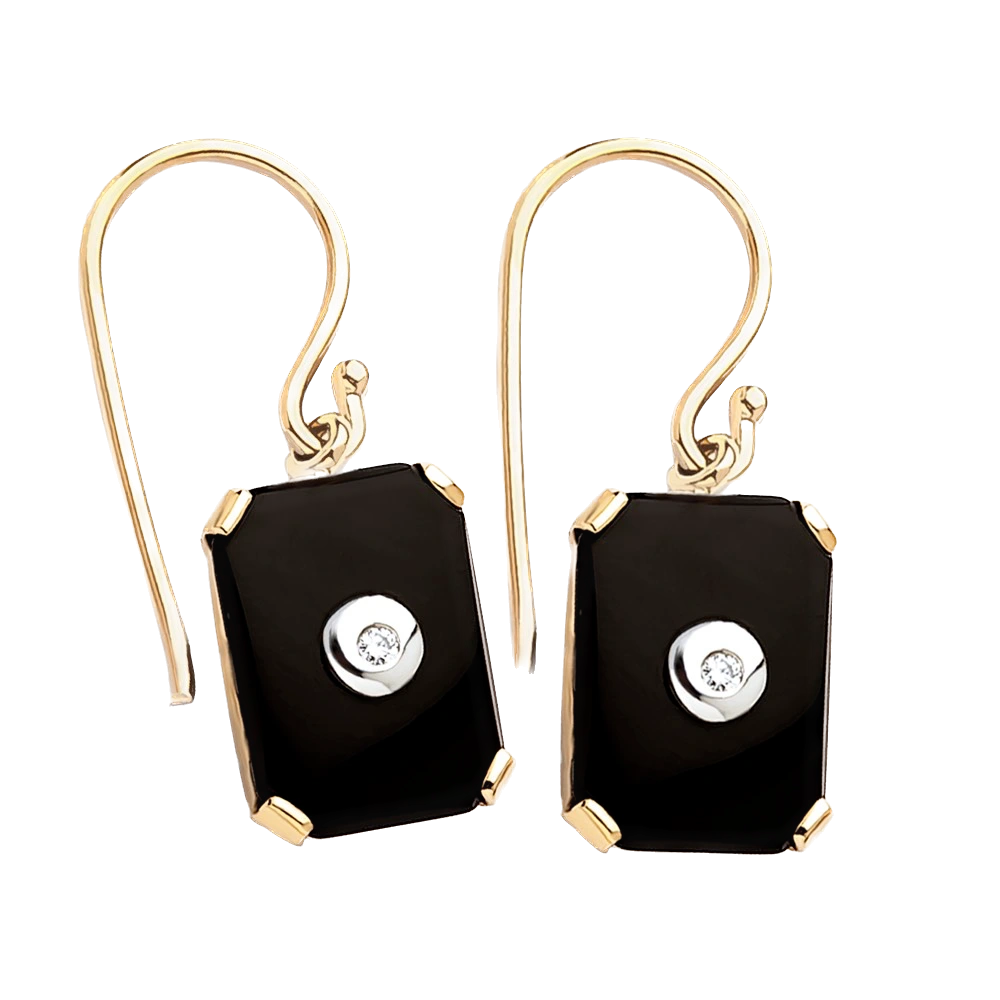 9ct Yellow Gold Rectangular Onyx and Diamond Earrings