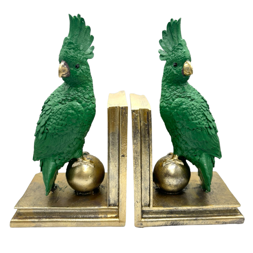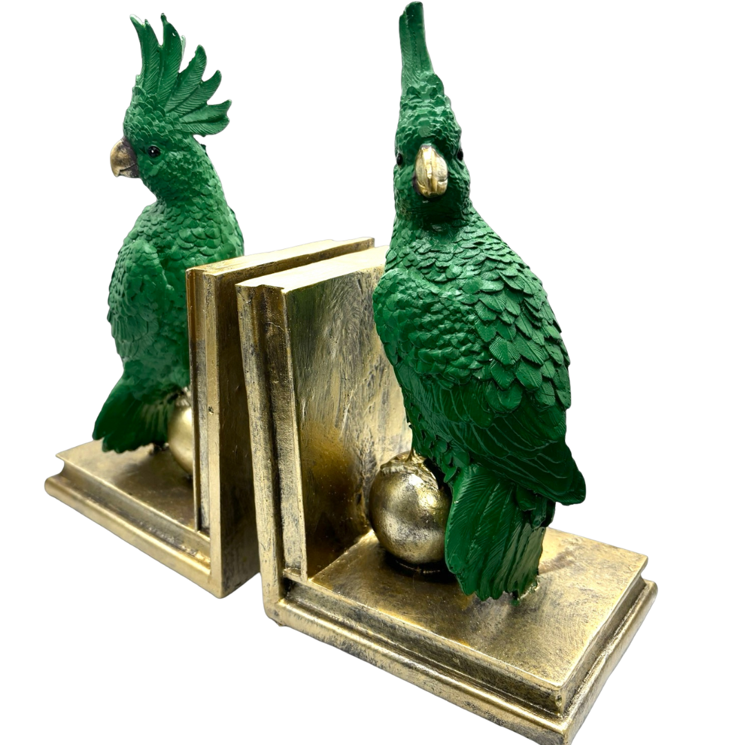 These Orn Cockatoo Bookends Fern and Gold add a burst of colour to any room!