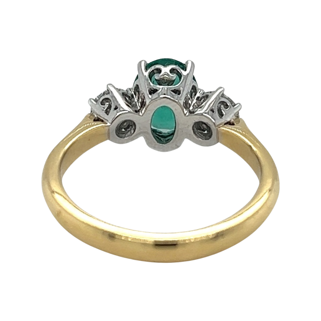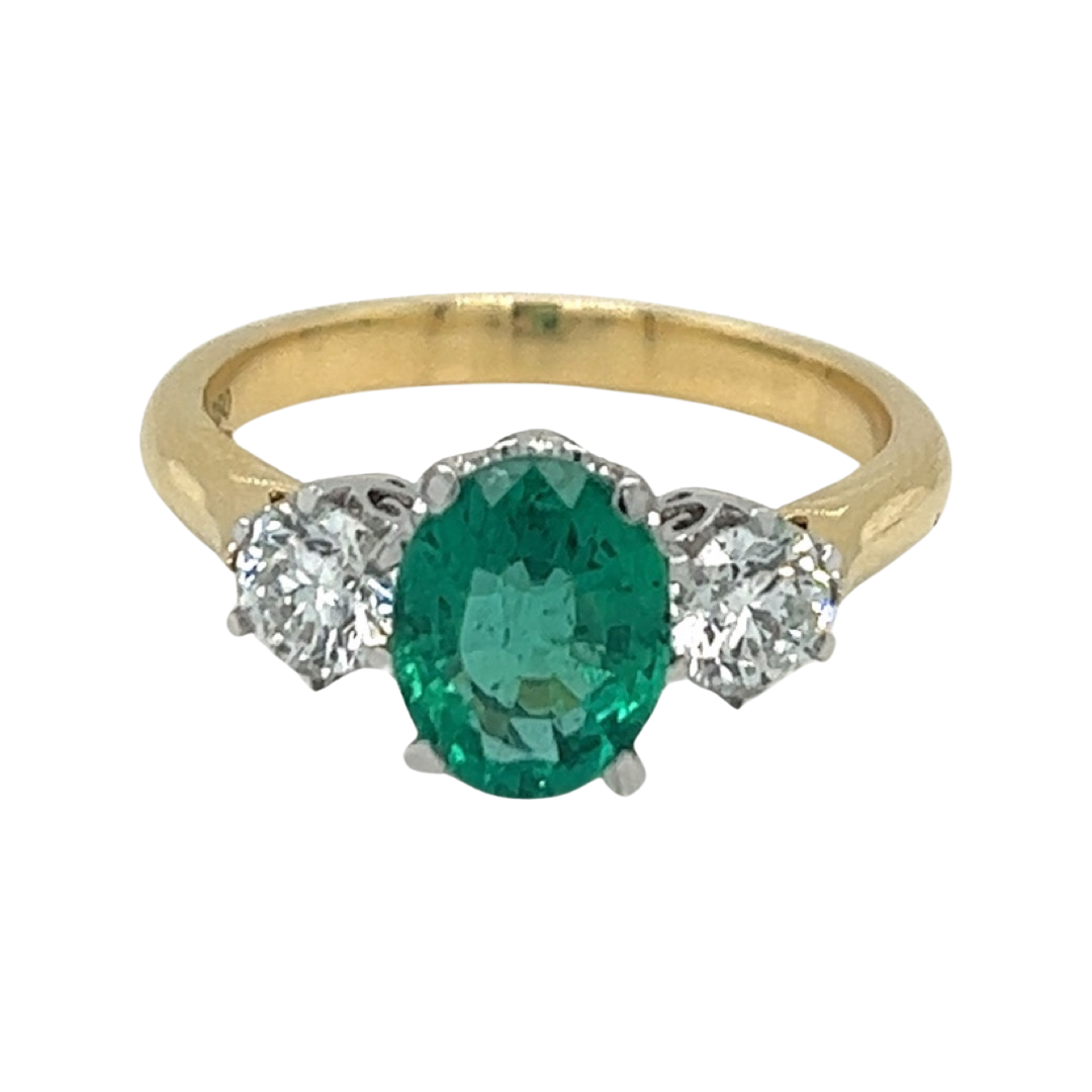 Our New, Trilogy 18ct Yellow Gold Ring with central 1.38ct Oval Zambian Emerald & Diamonds either side wont last long, come and shop in store and online!