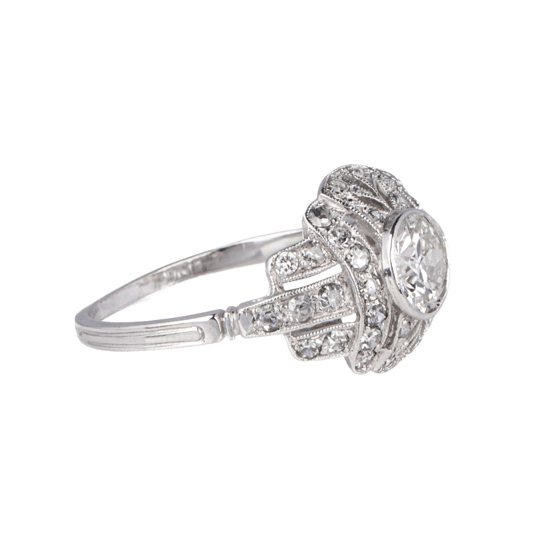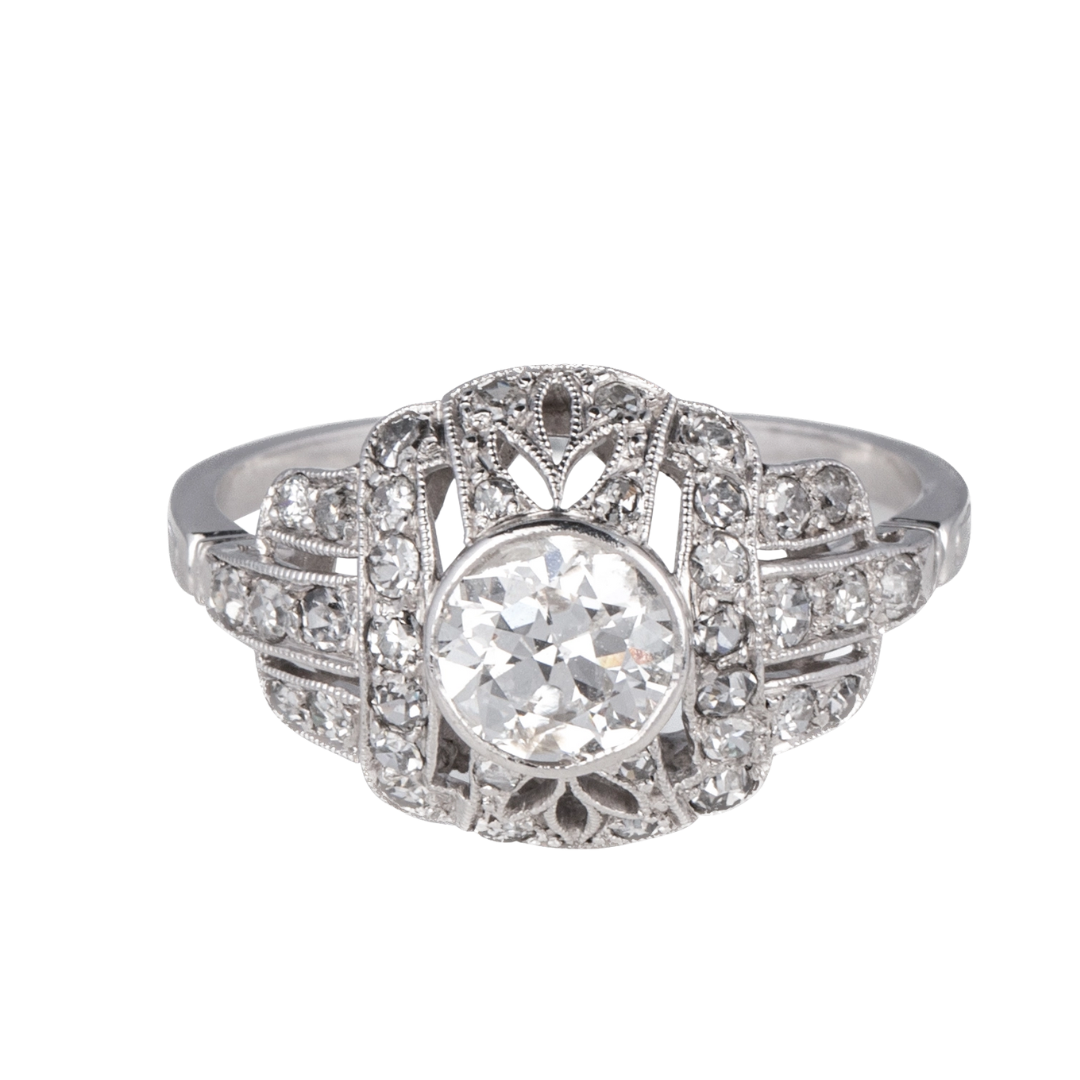 Look at how beautiful our Handmade Platinum Art Deco Diamond Ring is with a Total diamond weight = 1.39 ct.