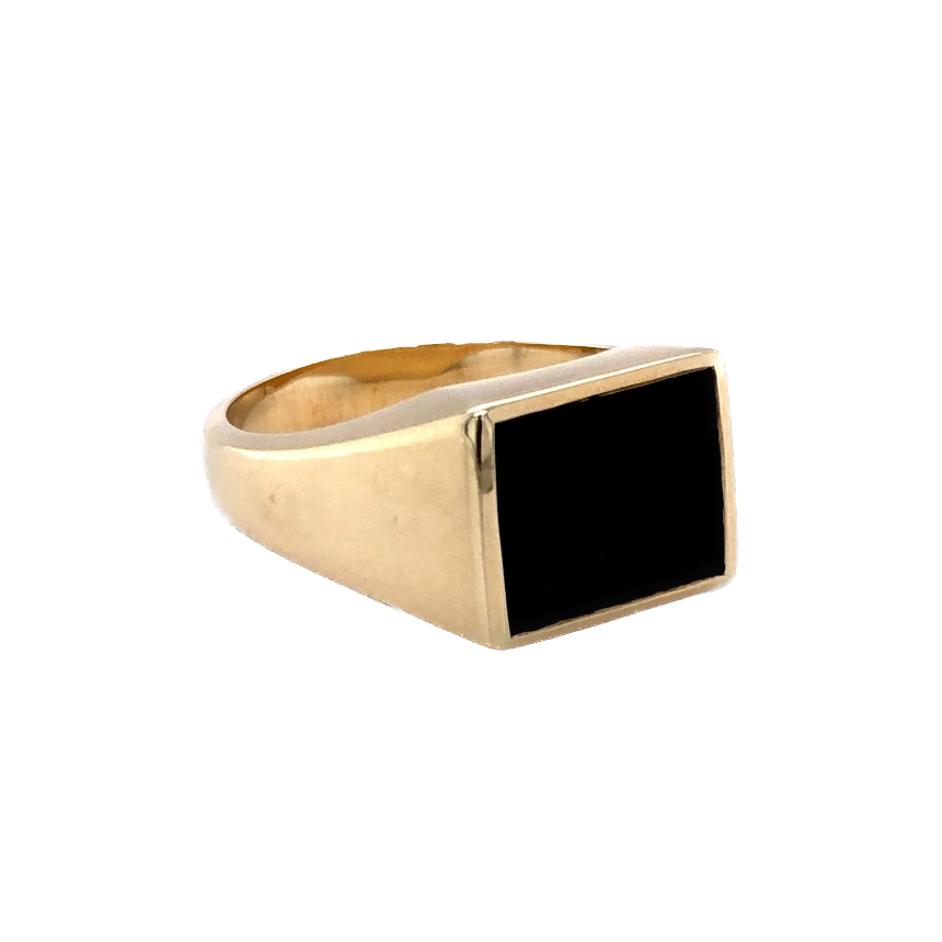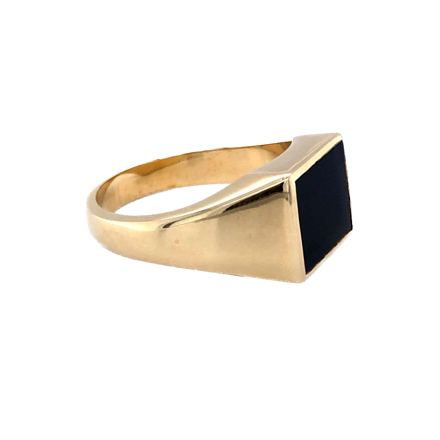 9ct Yellow Gold Rectangular Onyx Gents Ring