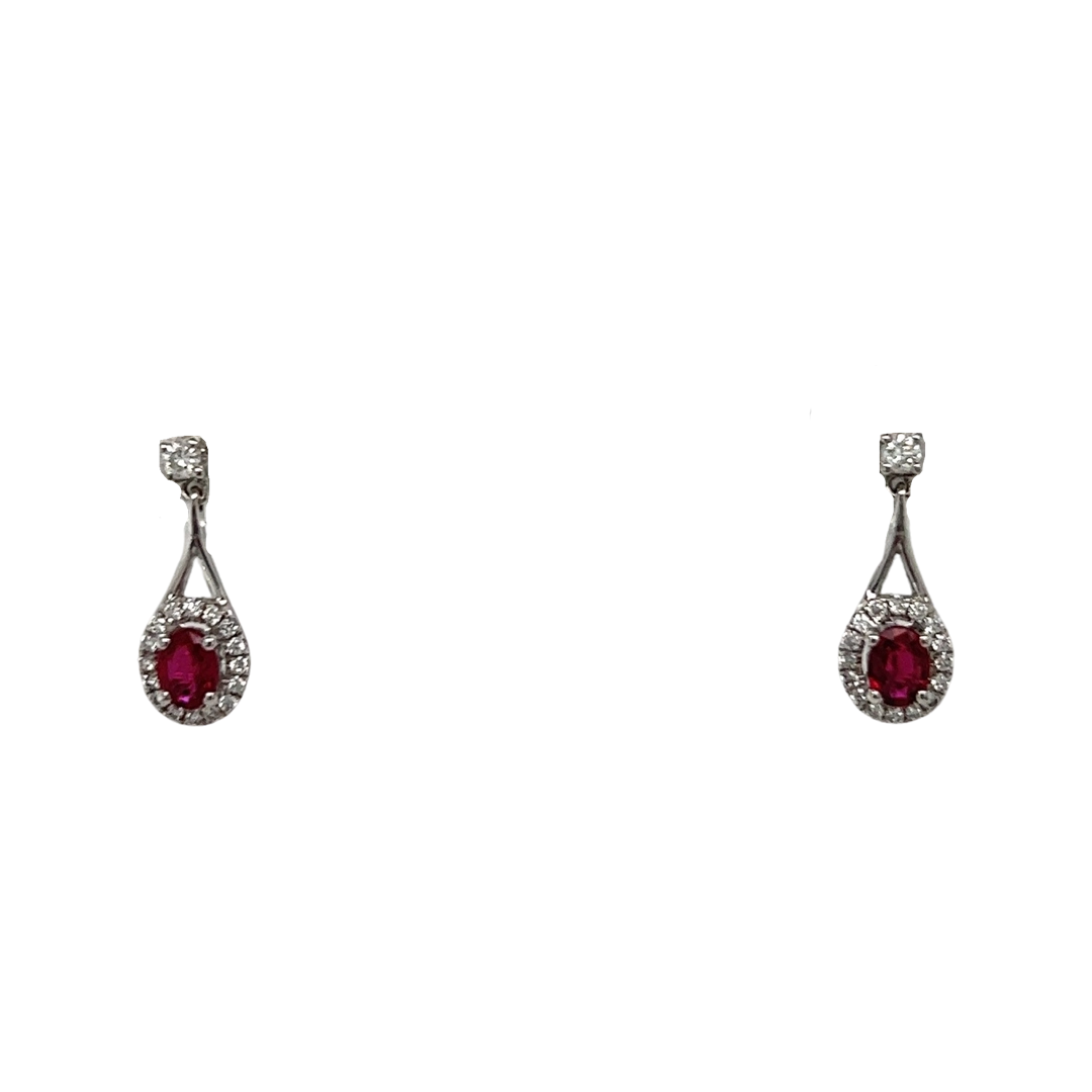The classic and beautiful 18ct White Gold Claw Set Ruby and Diamond Cluster Drop Stud Earrings would look so good as an every day earrings, come and see this stunning earrings in store now.
