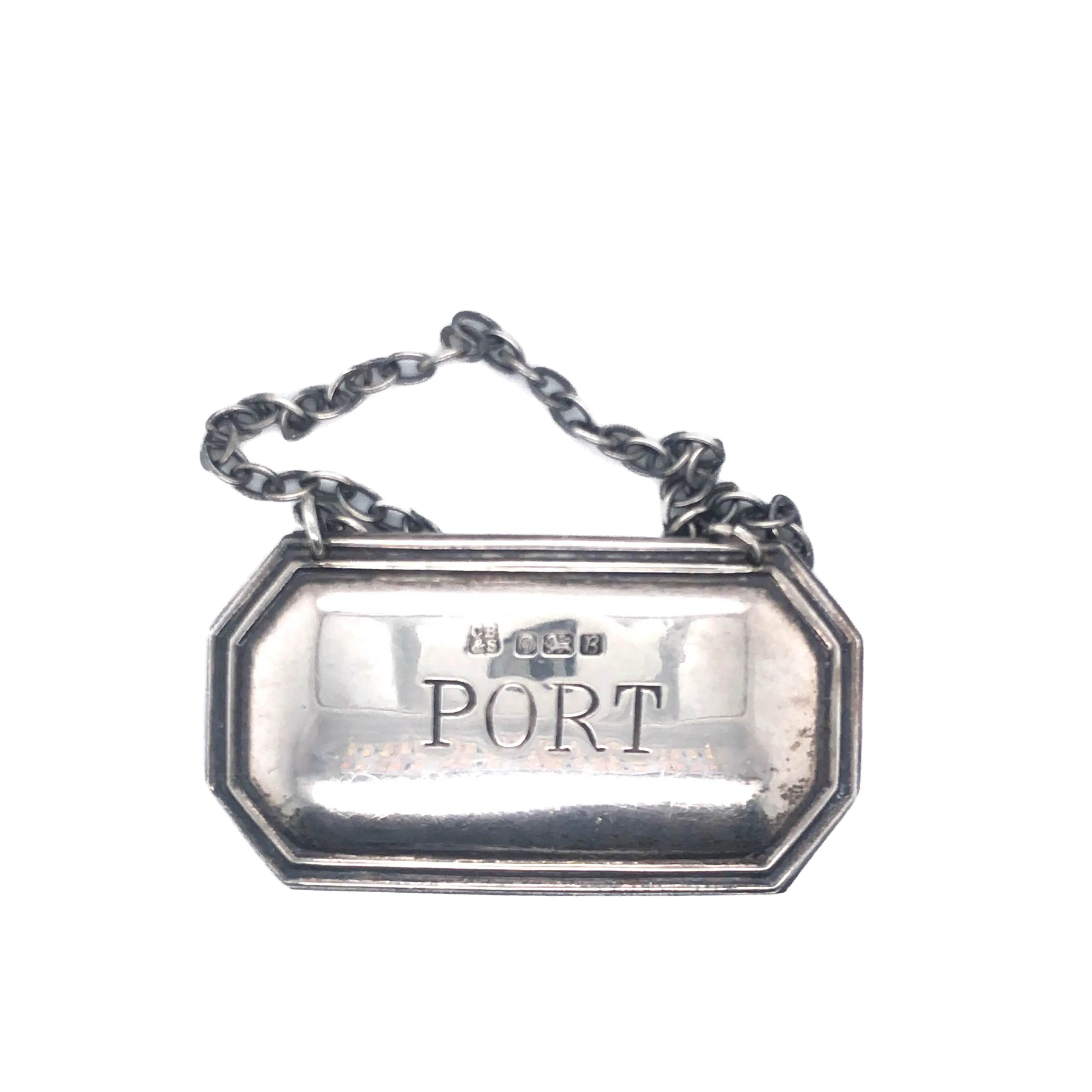 Sterling Silver Port Decanter Label Hallmarked CB&S Sheffield 1976.