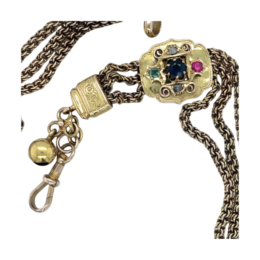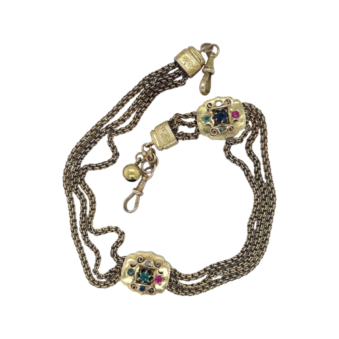 Our new Victorian 15ct Gold triple strand Albertina Gem Set Fob Chain/ bracelet, is a beautiful piece with a lot of history.