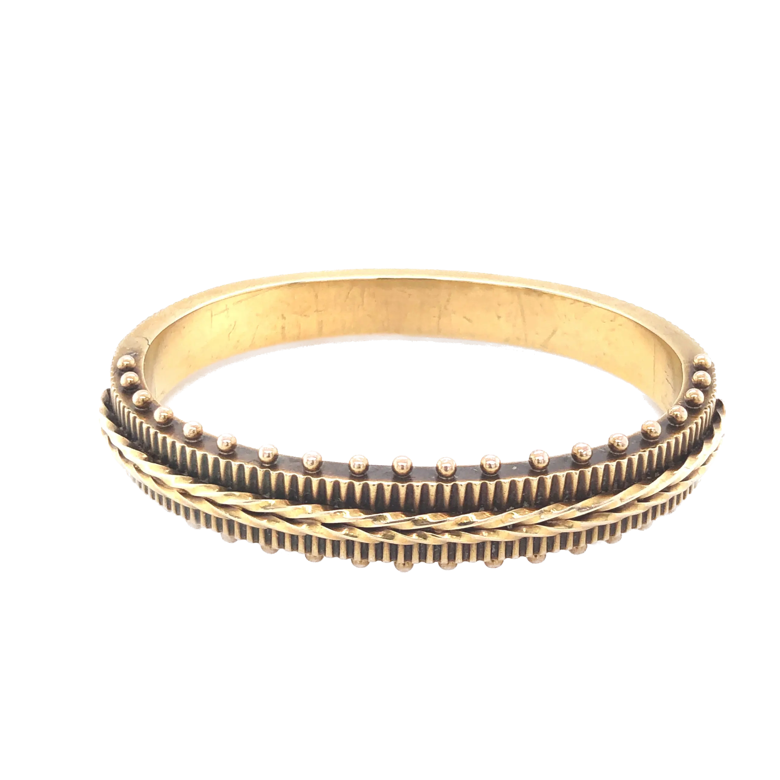 Victorian 15ct Yellow Gold Ball with Twist Patten Hinged Bangle.