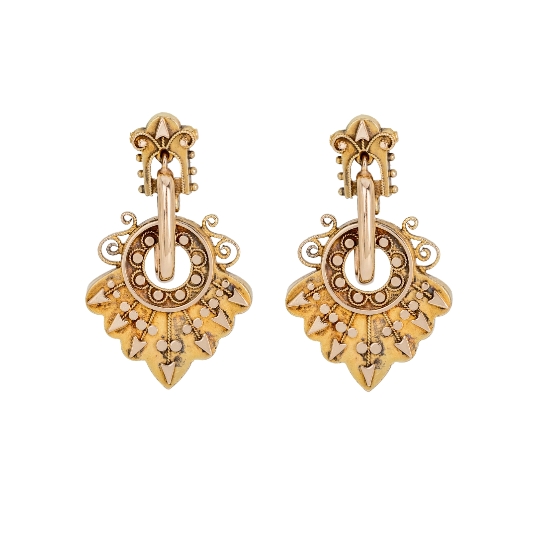 Victorian 15ct Yellow Gold articulated Drop Earrings With Ornate Design