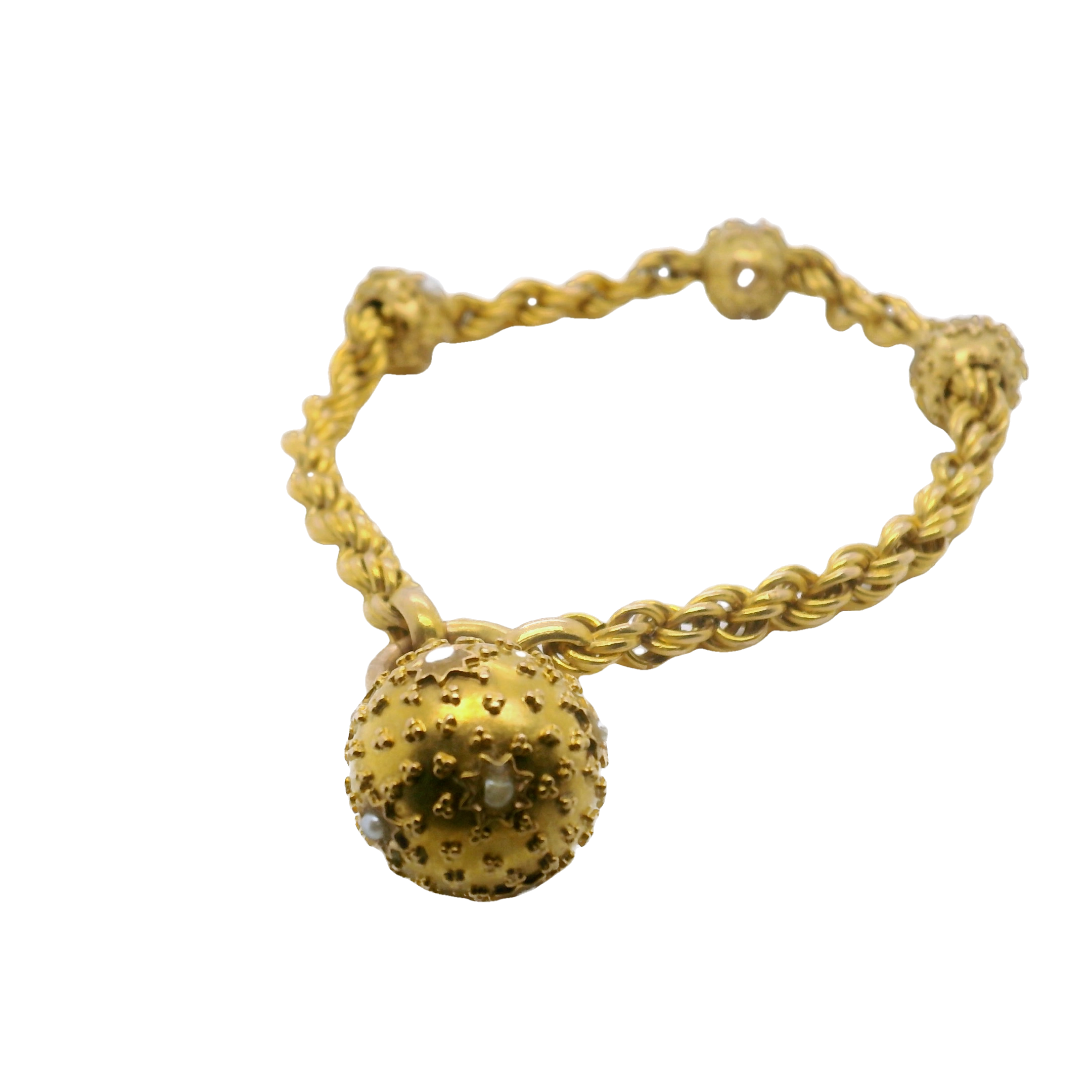 This unique Victorian 18ct Gold Ball and Seed Pearl Bracelet would start conversations and catch eyes!