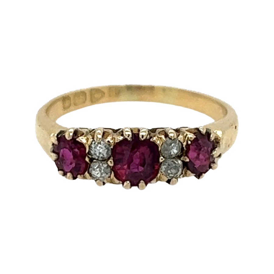 Our stunning Victorian 18ct Yellow Gold Ruby and Diamond Half Hoop Ring would suit any finger, come and try on this spectacular ring in store now.