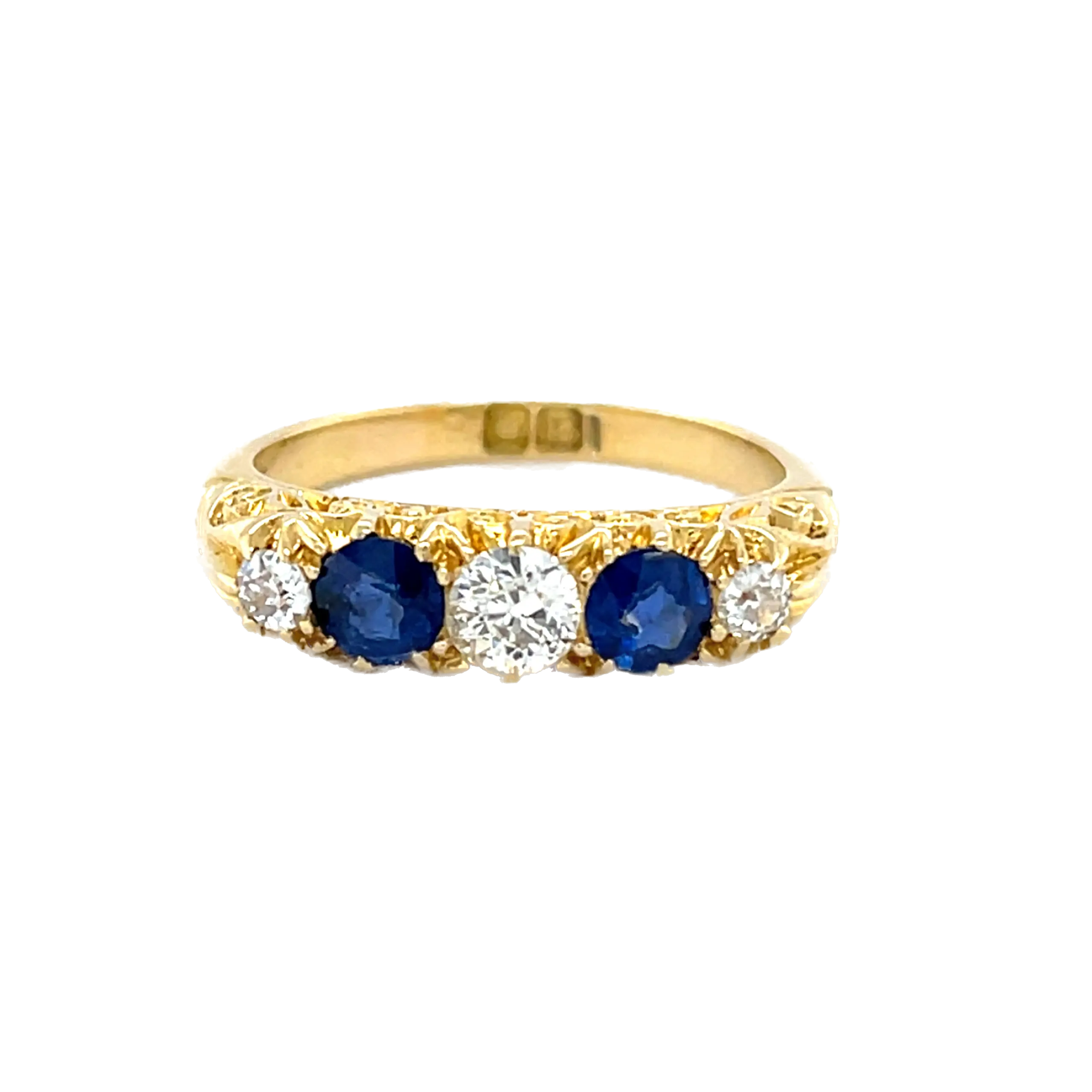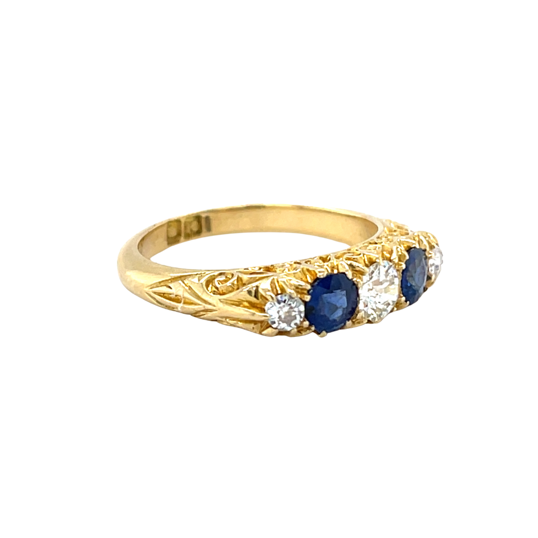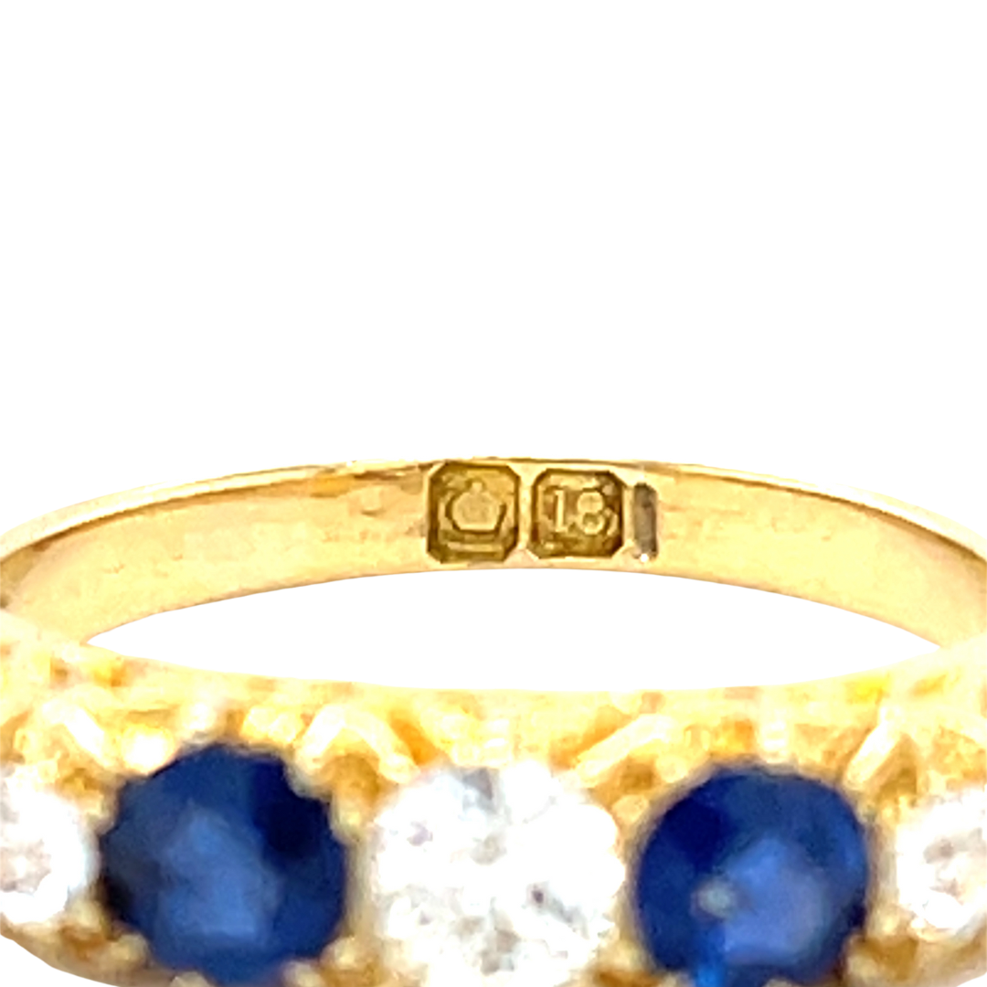 Victorian Handmade 18ct Yellow Gold Sapphire and Diamond Half Hoop Ring.