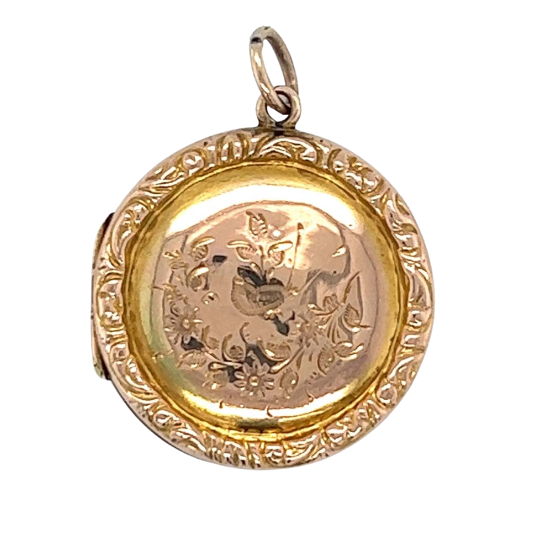 Victorian 9ct Rose Gold Round Locket with Bird Engraved