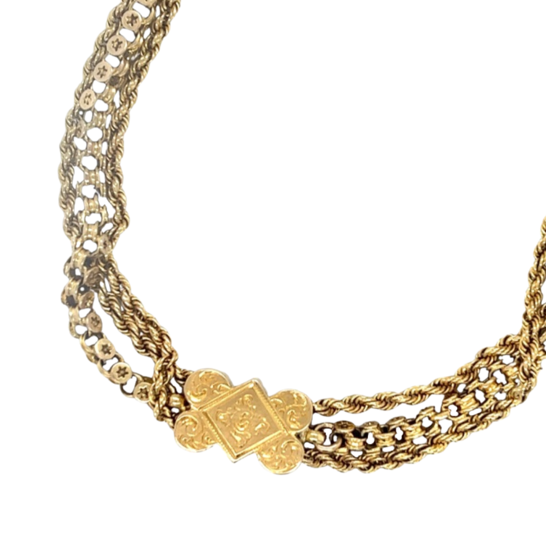 This distinctive Albertina is the elaborate version of the Albert chain used for fobs and watches. Albert chains were named after Queen Victoria's husband. Albertina chains were usually much prettier with decorative features and were worn as jewellery rather than as functional items. Both Albert and Albertina chains were made out of gold, or silver or gold and silver.