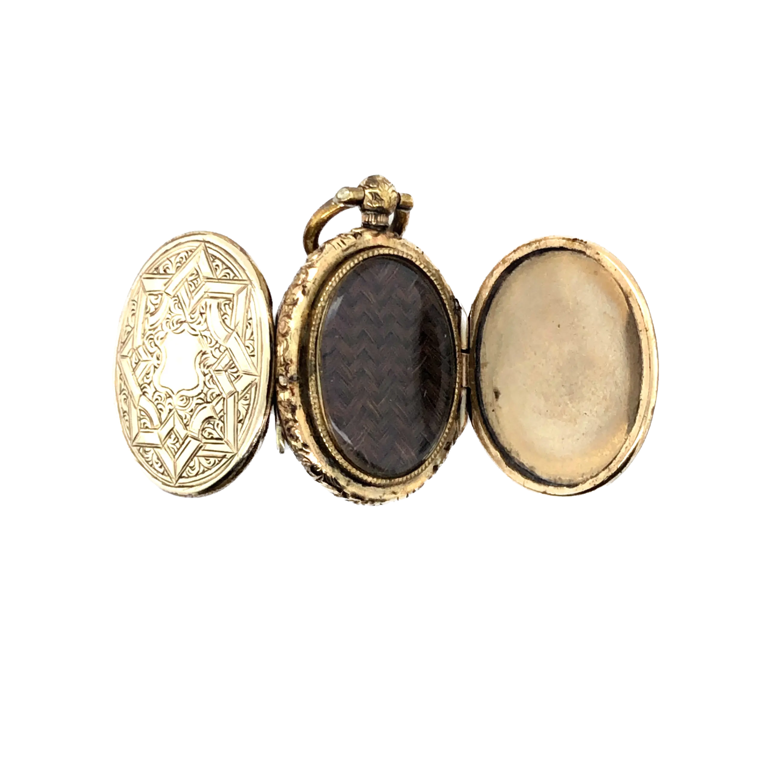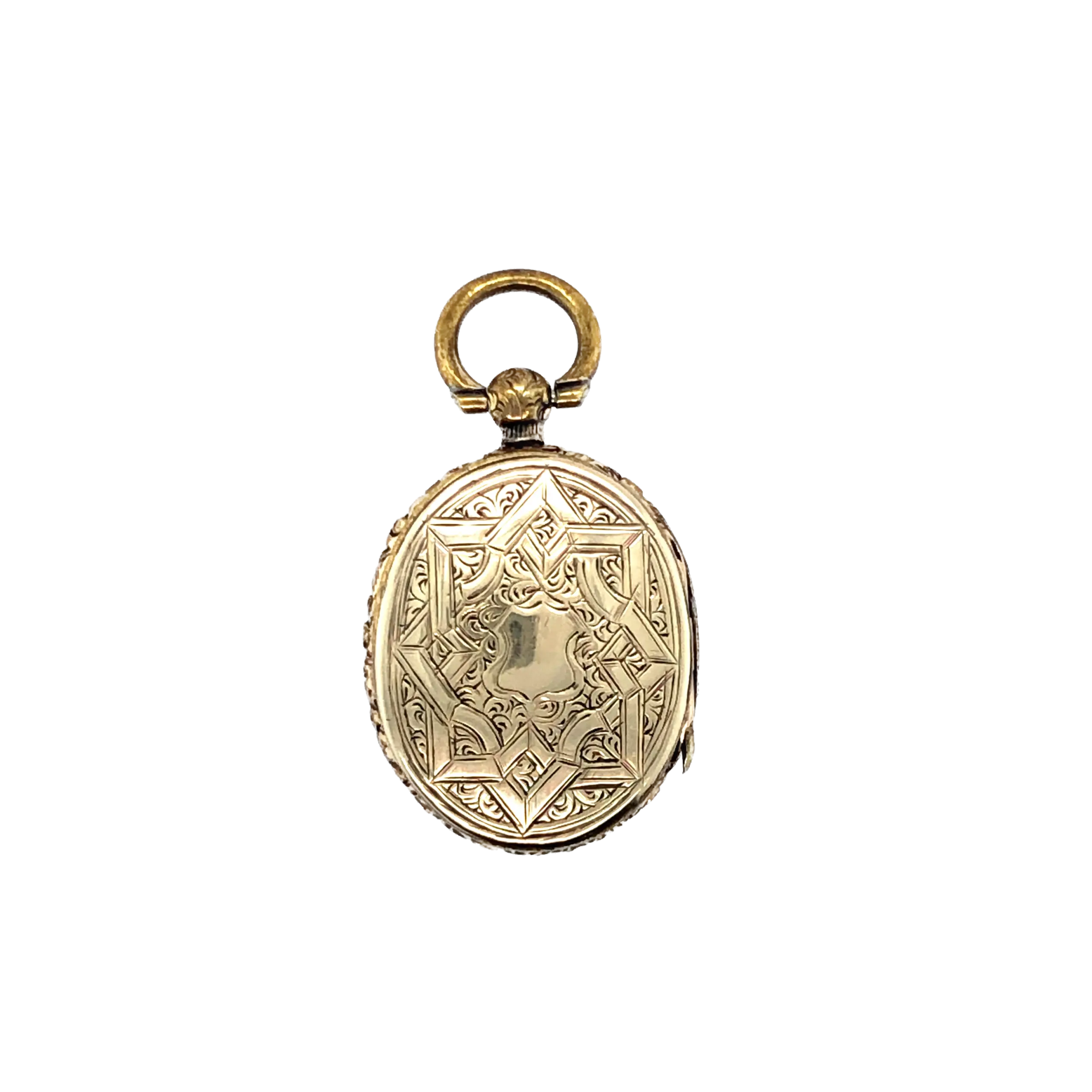 Victorian 9ct Yellow Gold Quad Locket with stunning engraved front and reverse openings c1880.
