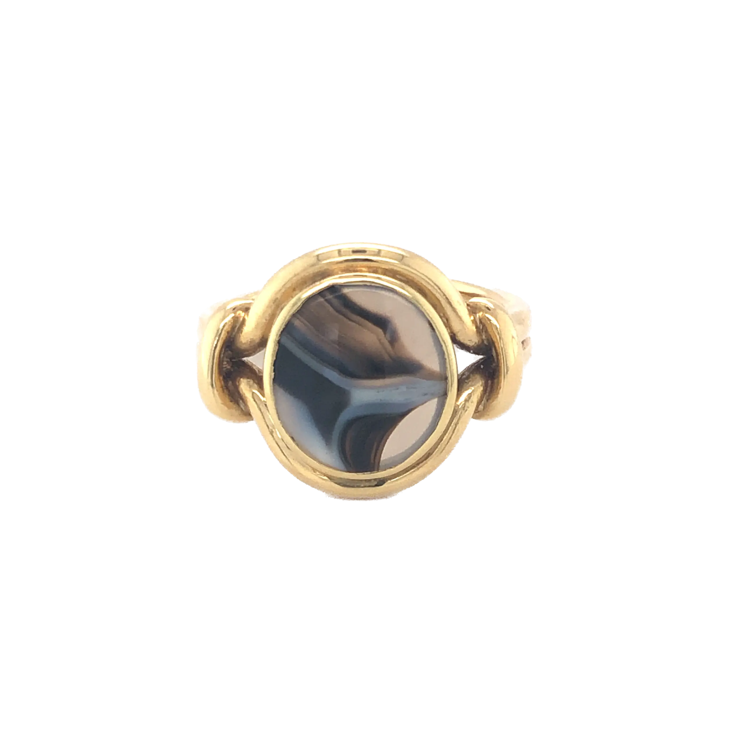 Victorian 18ct Yellow Gold Banded Agate Signet Ring